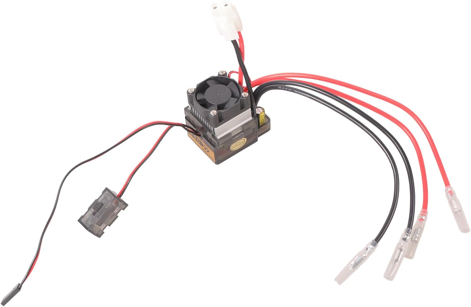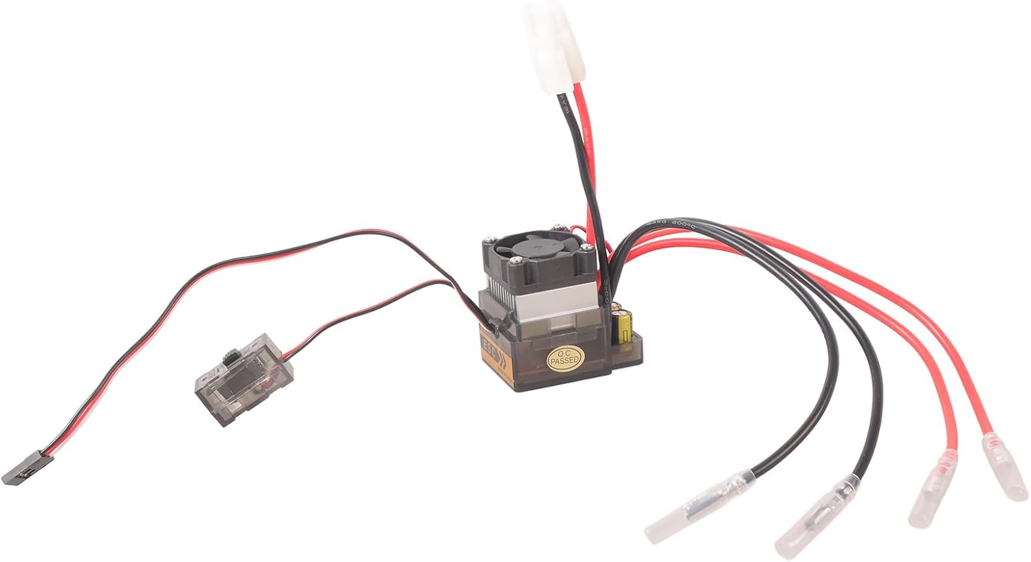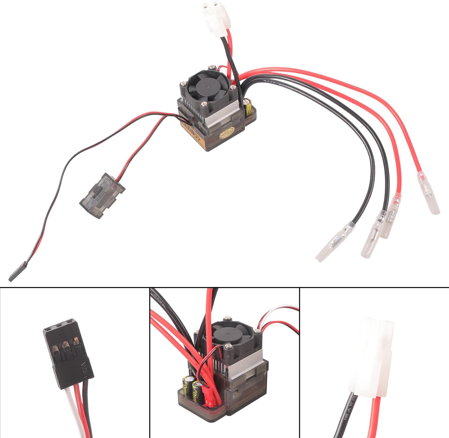 Protezione; protezione da sottotensione; Protezione contro le sovratensioni con dissipatore di calore. Funzionamento: avanti, indietro e freno. Per motore 380//-o motore singolo. Nuovissimo e di alta qualità Alimentazione: 7,2 V - 16 V; Voltaggio in ingresso (consigliato): 6 – 12 celle NiMH/NiCd o 2 – 4 celle.