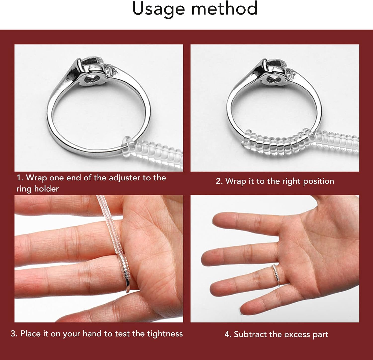 1. STRUMENTI INVISIBILI: Realizzato in materiale siliconico morbido eccellente, che è trasparente e invisibile, bello all'esterno 2. SUPER ELASTICO: Questo regolatore ad anello è dotato di super elastico per soddisfare le esigenze di personalizzazione di diverse dimensioni di anelli 3. DIMENSIONE REGOLABILE: Regola per regolare le dimensioni dell'anello, la forma è piatta, molto flessibile, utile e pratica 4. FINO ARTIGIANE: utilizzare una tecnologia avanzata con una lavorazione eccellente per ottenere una superficie liscia, che non fa male alle mani ed è riutilizzabile 5. STABILE E DUREVOLE: il regolatore ad anello per anelli sciolti ha una struttura stabile, prestazioni eccellenti e lunga durata Specifiche: Tipo di articolo: regolatore dell' Materiale: silicone Formato del prodotto: piatto Modalità d'uso: 1. Avvolgere l'estremità del regolatore attorno all'impostazione2. Continua a avvolgere nella posizione corretta3. Metti l'anello intorno alla mano per testare quanto è stretto. Se è stretto, avvolgerlo di meno, e se è allentato, avvolgerlo di più4. Tagliare il regolatore in eccesso Lista di 1 regolatore ad anello.