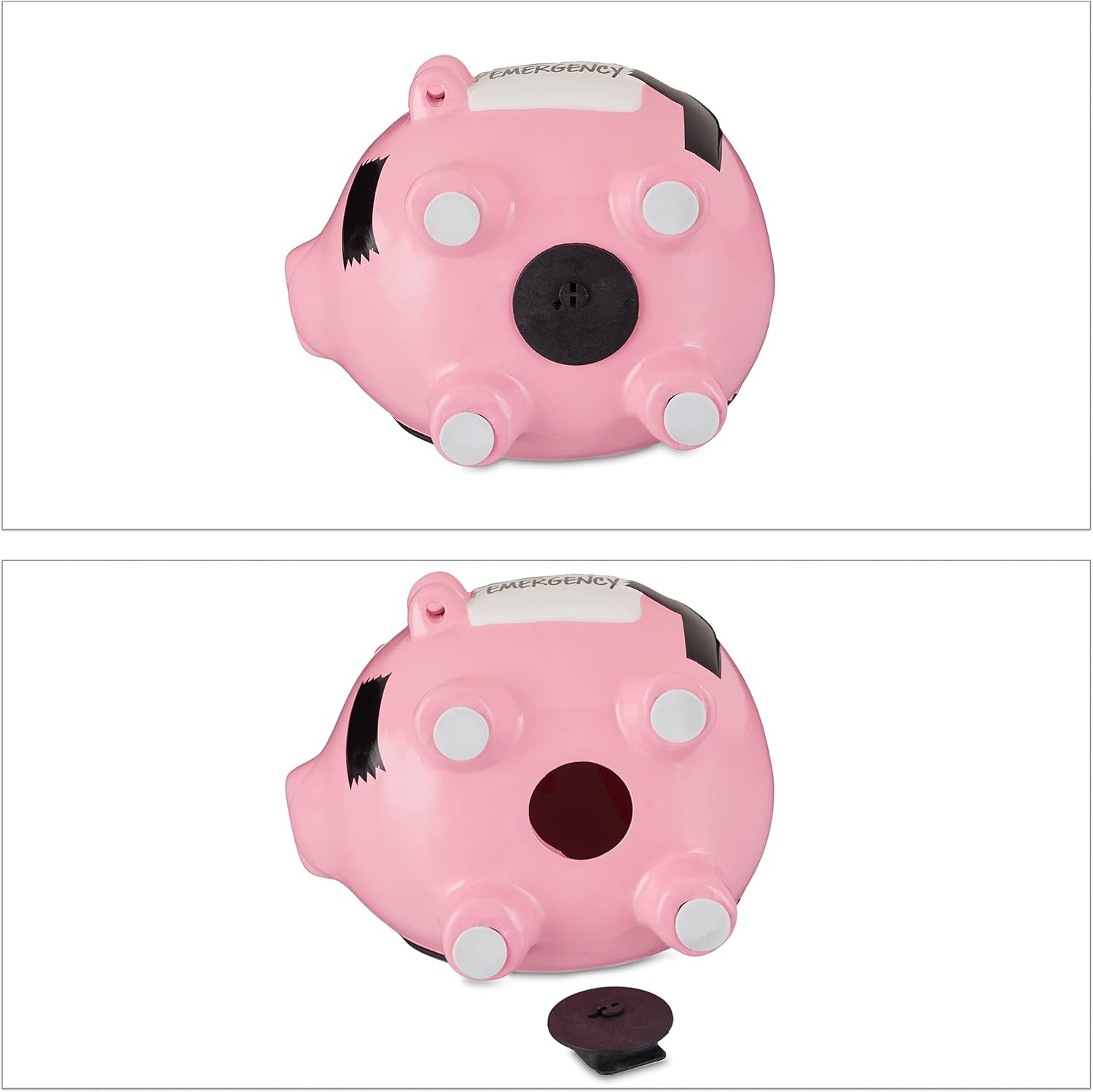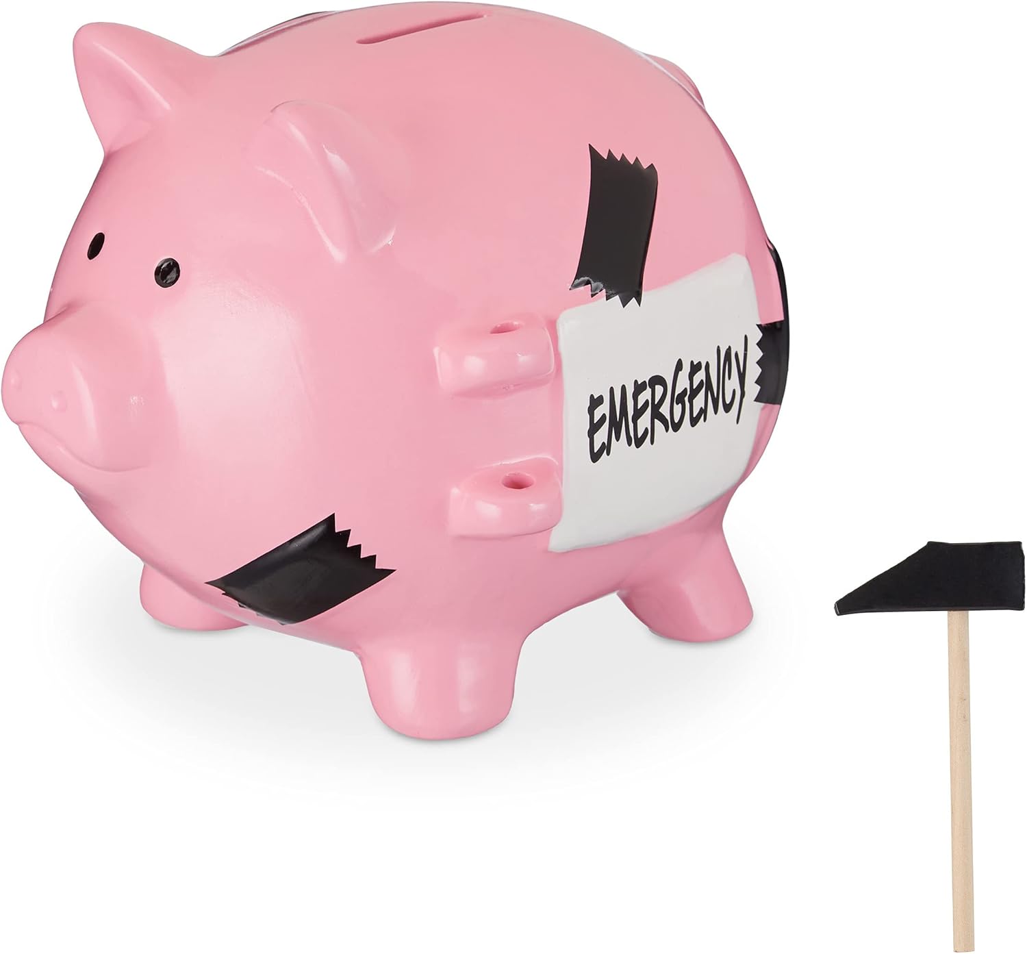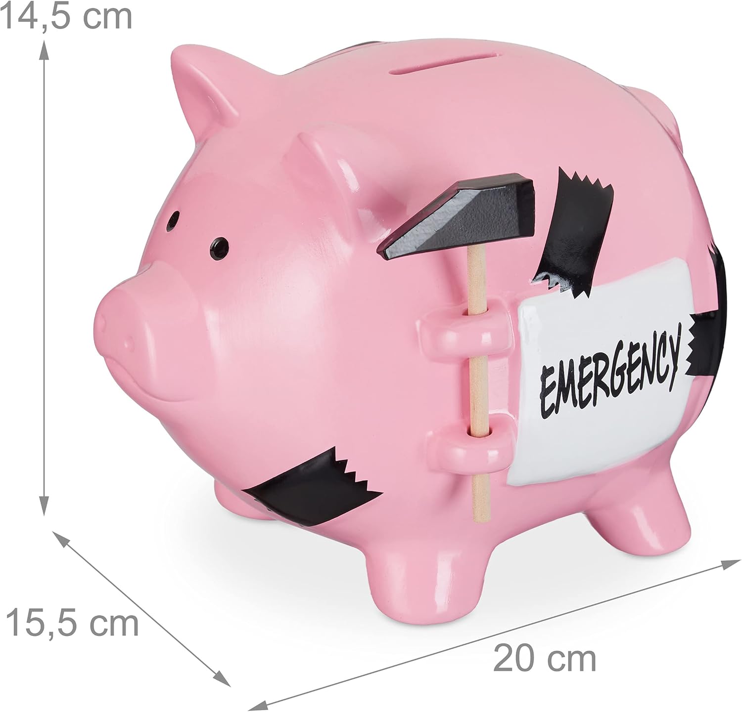 set di 2 maialini portafortuna: salvadanaio rosa con dettagli – grande cassaforte per tutte le età Ceramica: salvadanaio da rompere in emergenza - Divertente con martello e scritta "Emergenza" Realizzatore di desideri: salvadanaio per risparmiare per vacanze e patente. Raccoglie monete. Set regalo da 2: salvadanai per matrimoni, compleanni, lauree e altro. Idea regalo per bambini. Dimensioni: 14,5×15,5×20 cm – Serratura con 2 chiavi – Fondo in feltro