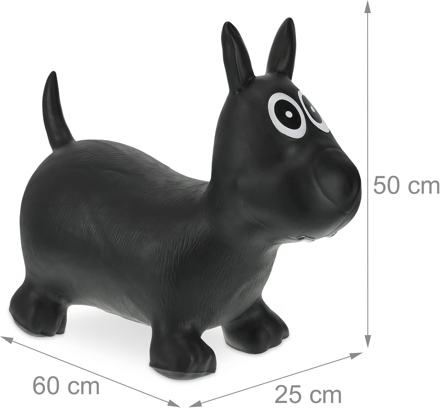 Grazioso: cane gonfiabile convince per i suoi dettagli come gli occhioni e la coda - colore nero Per bimbi: sostiene fino a 50 kg - per sviluppare l'equilibrio e la coordinazione degli arti Per interni ed esterni: divertimento assicurato in casa e in giardino - altezza seduta: 25 cm ca. Fantastica idea regalo: giocattolo gonfiabile ideale per bimbe e bimbi - pompa manuale inclusa Dettagli: in plastica PVC antiscivolo - privo di BPA - dimensioni totali HxLxP: 50 x 60 x 25 cm ca.