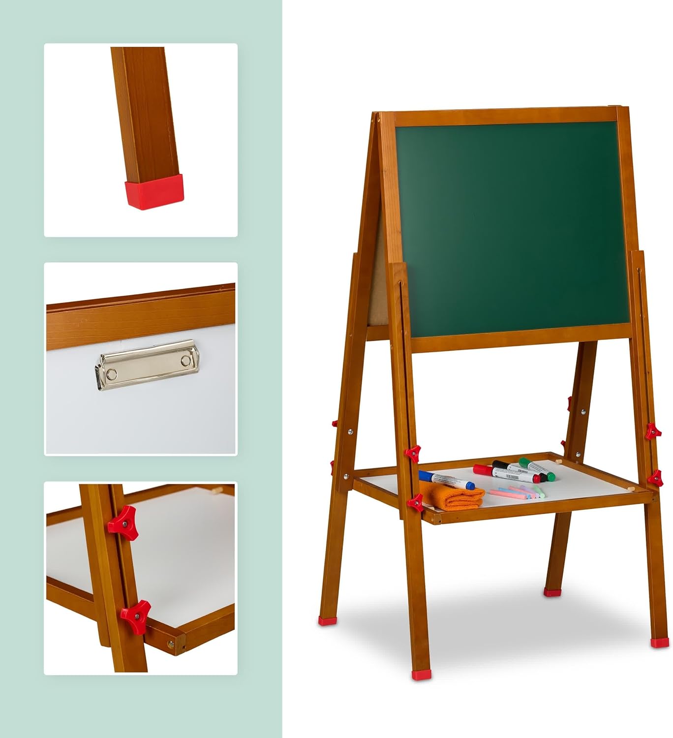 Gioco: lavagna per bambini per dipingere, scrivere e contare, ideale come gioco educativo per bimbi Regolabile: la lavagnetta da gioco si regola in altezza facilemente, così cresce con il tuo bambino Lavaga con cavaletto doppia: lavagna bianca magnetica per pennarelli e lavagna ardesia per gessetti Pratico: la lavagna con fermacarta è usabile come cavalletto da pittura - con ripiano per pennarelli Dettagli: la lavagna per bambini ha un'altezza di 102-135 cm - adatta a bambini a partire dai 3 anni
