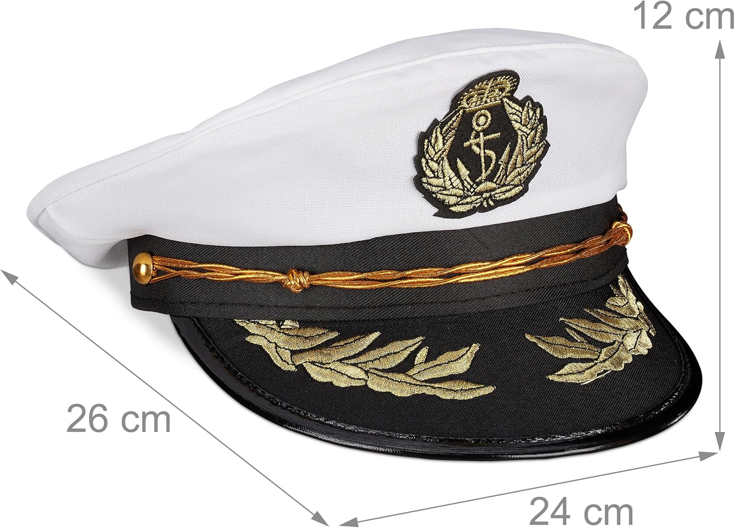 Cool: per dare il tocco finale al proprio costume da capitano - colpo d’occhio a ogni festa o party Riproduzione: berretto decorato con visiera scura e corda dorata - con ornamento a forma di ancora Per varie occasioni: accessorio ideale per carnevale, feste in maschera, party a tema e altro Unisex: cappello da capitano per uomini e donne - fantastico completamento per vestirsi da marinaio Dettagli: berretto da ufficiale in poliestere con 58 cm ca. di circonferenza - taglia unica