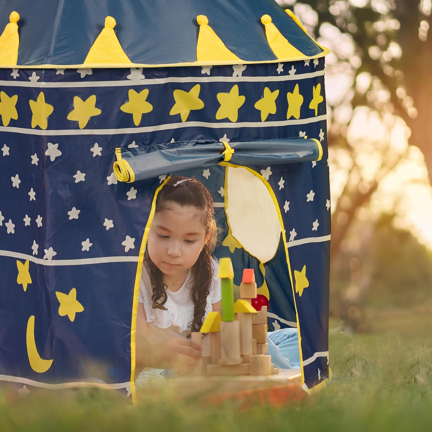 Divertimento per bambini e bambine: la tenda da gioco fa divertire tutti i bambini dai 3 anni in su Tema luna e stelle: tenda da gioco rotonda con design stellare - porta avvolgibile per gattonare Da interno: tenda leggera per bambine, gioco perfetto per la cameretta o la stanza dei giochi Montaggio rapido: casertta giocattolo che si monta in pochi minuti - facile da smontare e metter via Outdoor: tenda da gioco per bambini in tessuto con pali in fibra di vetro adatta anche all'esterno