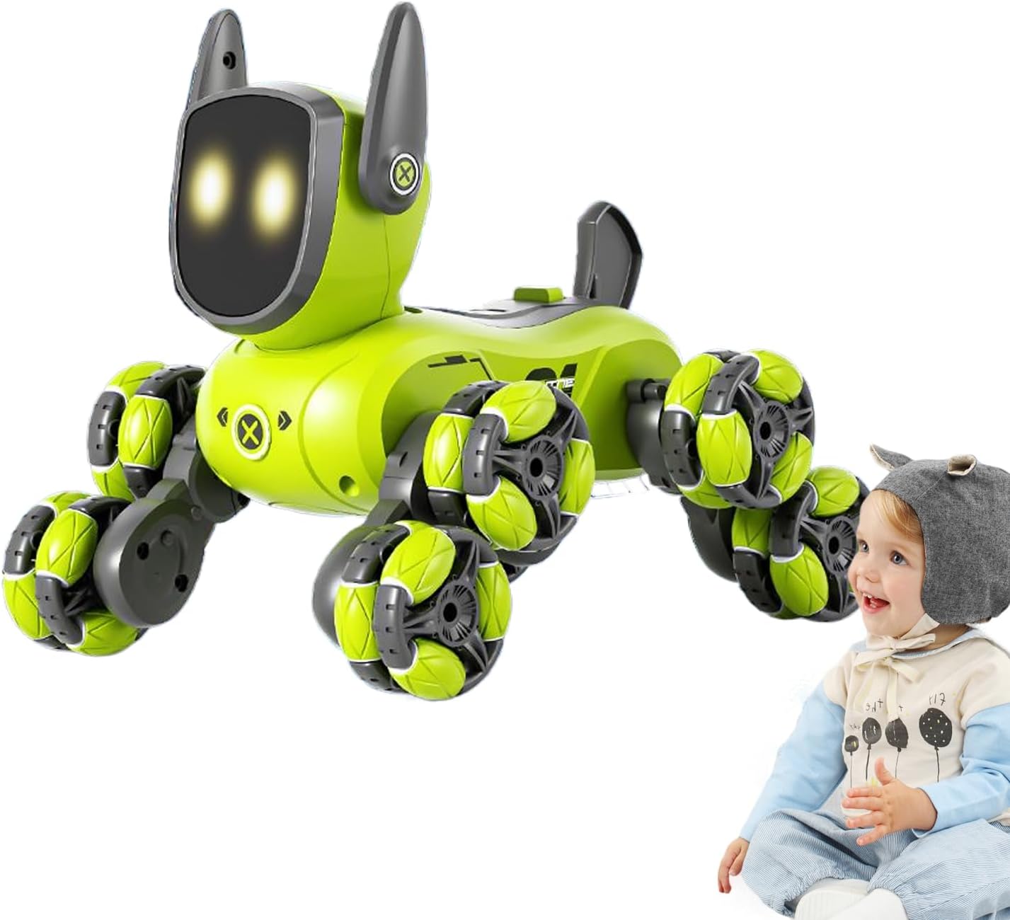 Ideal Versatility: With fast, smooth movements, this robot dog spins 360 degrees, dances, and executes stunts with incredible manoeuvrability; it will stand, lie down, and even climb Exciting Play Options: Revel in the ability to effortlessly maneuver the toy robot dog using a combination of remote and hand controls, guaranteeing more joy for kids. The 2.4Ghz technology ensures a stable and user-friendly connection, making playtime a breeze Great Durability: Crafted with great materials, ensuring robust, solid building quality and durability that withstands energetic play, this robot dog is not easy to break and can be used for a long time Captivating Visual Experience: Sparkling with bright LED lights and lively music, this robot dog ensures a captivating experience with realistic movements and flexible limbs for thrilling interactions Thoughtful Present: Celebrate birthdays, holidays, and special occasions by presenting this interactive robot dog to family and friends. Watch happiness unfold