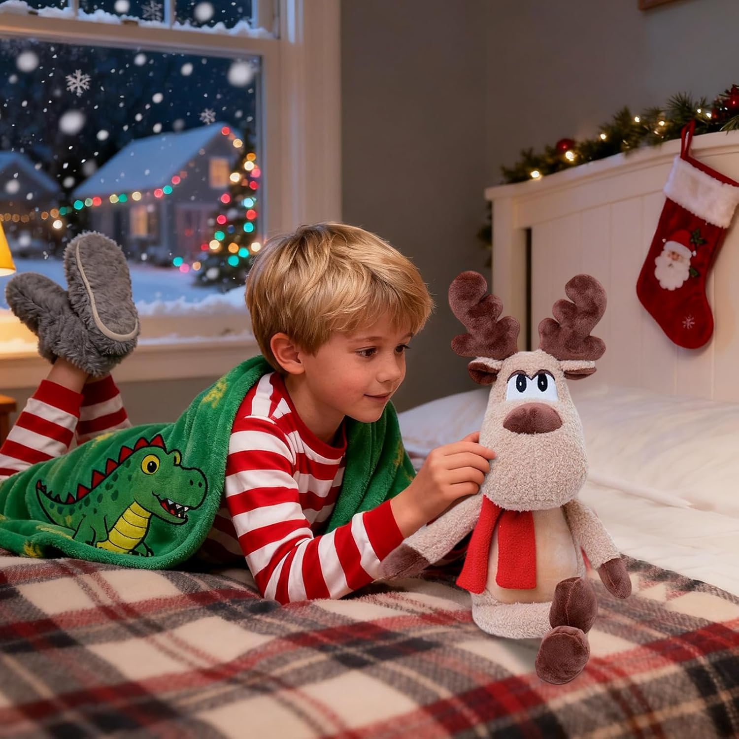 Fascino Natalizio della Renna: La renna di Natale si distingue visivamente e infonde un senso di sicurezza nei bambini grazie al suo design accogliente, creando un'atmosfera incantevole per le feste di Natale o le serate invernali trascorse in famiglia. Perfetta come decorazione renna natalizia per abbellire la casa durante le festività. Tocco Elegante Natalizio: Le decorazioni per Natale con renna offrono un design classico e dettagli di sciarpa rossa, aggiungendo un tocco di eleganza all'allestimento festivo e creando ricordi calorosi in soggiorni o aree esterne. La renna natalizia con i suoi abbellimenti contribuisce a un'ambiente raffinato e gioioso, per vivere appieno lo spirito delle feste in famiglia. Prop fotografico creativo: Questi peluche decorativi servono come prop fotografico per molteplici scenari, esaltando l'atmosfera mentre aggiungono charme ad allestimenti natalizi come soggiorni, feste o eventi all'aperto, ideali per fotografie creative e display stagionali. Regalo Stagionale Confortevole: Realizzato con peluche morbidissimo e un riempimento ecologico sicuro per l'ambiente, questa renna natalizia offre una sensazione di lusso e delicatezza sulla pelle, grazie ai materiali di alta qualità. È una scelta versatile per decorare la casa in stile festivo o come regalo apprezzato da persone di tutte le età, aggiungendo gioia e calore durante le celebrazioni natalizie. La sua texture incredibilmente morbida la rende ideale per creare un'atmosfera accoglient Regalo Natalizio Incantevole: La renna di Natale offre un'opzione regalo ideale per bambini e amici, portando calore e fascino festivo in qualsiasi ambiente, arricchendo le celebrazioni e agendo come un gesto premuroso durante natalizie o scambi amichevoli per rafforzare i legami.