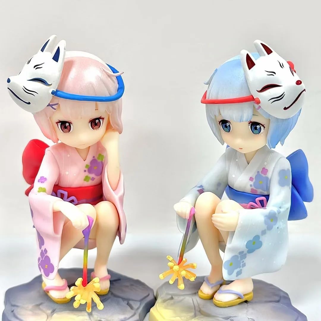 Figura Rem, figura di ariete, kimono seduto, fuochi d'artificio, action figure 15 cm/5,9 pollici, figura di anime, modello di statua, ornamento, regali. Regali per i fan degli anime: è un regalo ideale per la famiglia e gli amici che amano gli anime. È facile attirare il gusto della gente. REGALO IDEALE: una bambola realistica con un personaggio di supereroe è un regalo irresistibile per ogni appassionato di giochi. È un ottimo regalo per Natale, compleanni e Capodanno. Regali di figure in PVC cosplay: aspetto ben progettato di alta qualità, facile da mostrare una varietà di azioni.