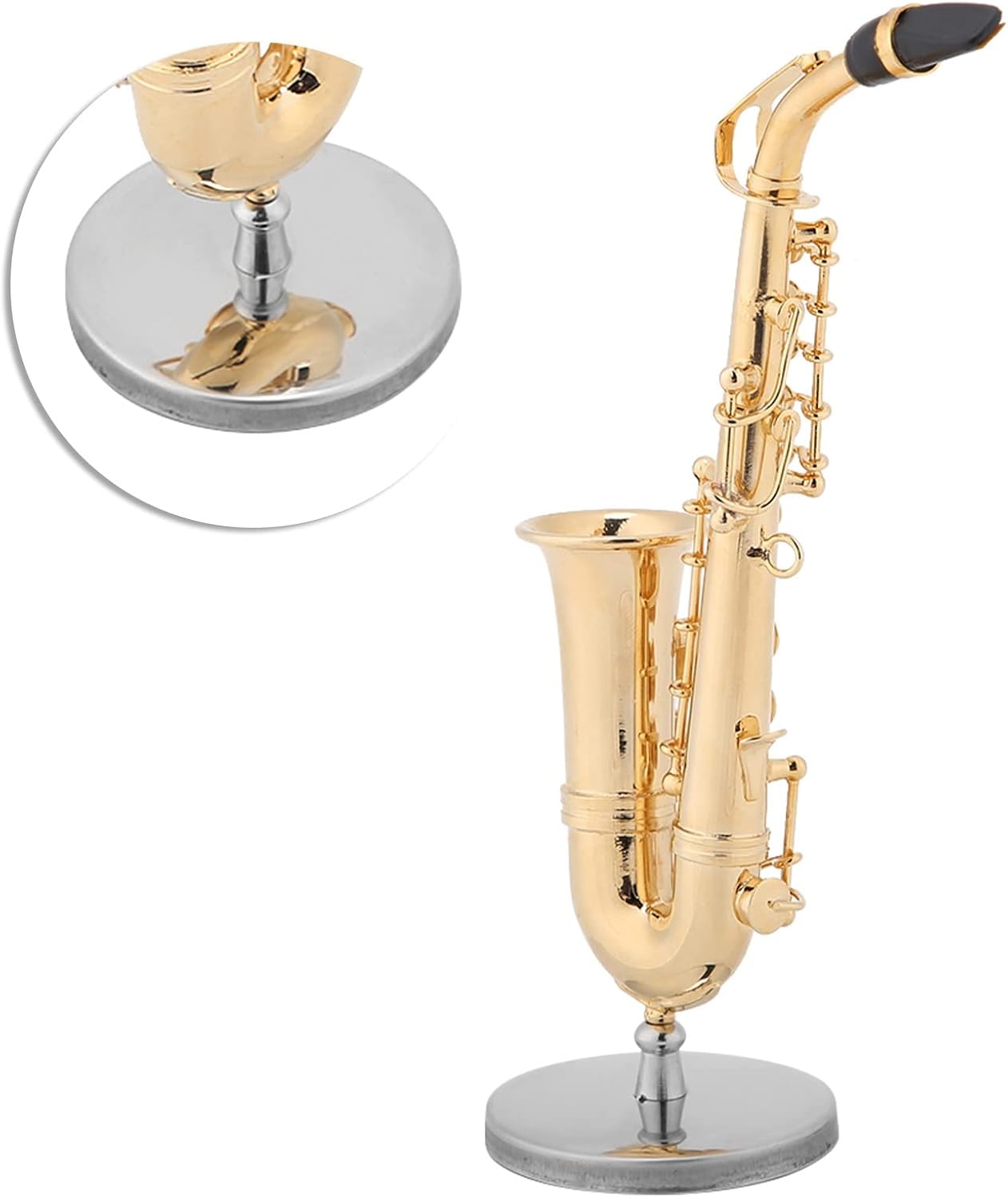 [Artigianato di alta qualità] Realizzata in ottone con lussuosa placcatura in oro, questa replica in miniatura del sassofono contralto trasuda eleganza e durata. Ogni dettaglio, dalle chiavi in ottone dal design intricato all'ancia in legno realistica nel bocchino, dimostra un'eccezionale abilità artistica e lo rende un pezzo decorativo eccezionale per qualsiasi ambiente. [Elegante display con supporto] Questo squisito modello di sassofono è dotato di un elegante supporto che ti consente di esporlo magnificamente sul tavolo della tua libreria o nella sala da musica. Le sue dimensioni compatte di circa 8x4x13,5 cm lo rendono un accento decorativo adatto che aggiungerà un tocco di raffinatezza musicale a qualsiasi stanza [Squisita attenzione ai dettagli] con notevole precisione Questo sassofono in miniatura cattura ogni intricato dettaglio di un vero sassofono contralto, dal manico aggraziato all'arco elegante. I tasti in ottone e l'ancia in legno sono realizzati con cura per offrire un aspetto realistico che impressionerà sia gli amanti della musica che i collezionisti. [Lussuosa custodia regalo in legno] Ogni sassofono in miniatura è accompagnato da una custodia in legno di alta qualità per garantire una conservazione sicura e l'elegante custodia non solo protegge il tuo modello di sassofono ma ne migliora anche il fascino come opzione regalo premurosa e raffinata per ogni occasione [Regalo adatto per gli amanti della musica] Che sia per Natale, un compleanno o un'altra occasione speciale, questa replica di sassofono placcata in oro è un regalo indimenticabile per i musicisti per bambini o per chiunque apprezzi la raffinata decorazione musicale. La sua miscela unica di bellezza e artigianalità garantisce che sarà apprezzata per gli anni a venire.