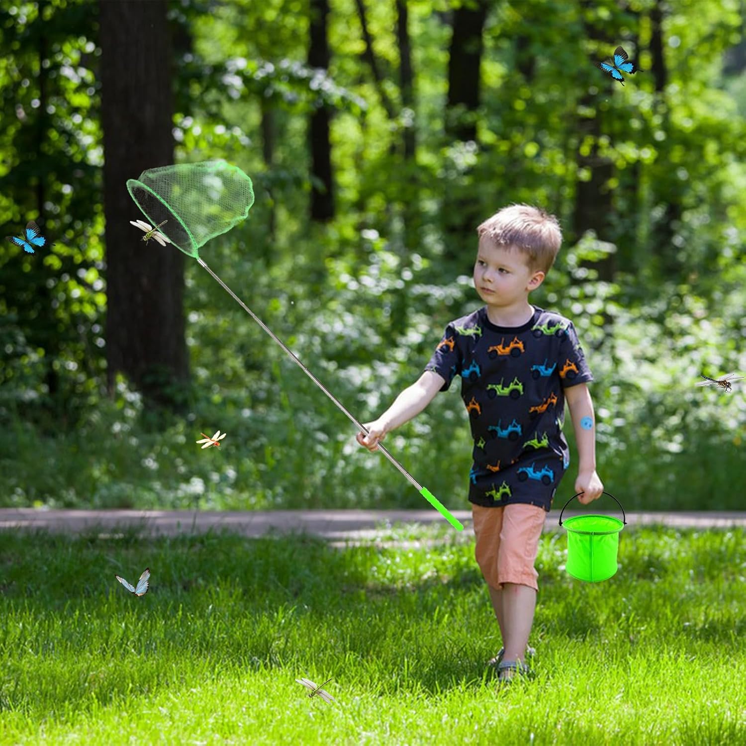 Elenco dei pacchetti: riceverai 2 reti per farfalle e 2 secchi pieghevoli, rispettivamente arancione e verde. Adatto a bambini di tutte le età. La quantità è sufficiente per far giocare i bambini durante le gite primaverili e il campeggio. Materiale di alta qualità: il guadino per bambini è realizzato in nylon, resistente, durevole e leggero. Il manico è in acciaio inossidabile ed è ricoperto da uno strato di gomma, che lo rende molto comodo da tenere in mano. Non facile da rompere e arrugginire, facile da allungare e facile da ritrarre. Manico telescopico: il design del manico telescopico è molto pratico, il che è utile per riporlo quando non viene utilizzato. Puoi anche regolare la lunghezza in base alle tue esigenze, tirando la maniglia, la lunghezza della rete da pesca per bambini può essere regolata tra 36 cm e 83,5 cm. Leggero e portatile: il retino per farfalle per bambini è retrattile e ha un design molto pratico. Il secchiello pieghevole è leggero, si ripiega quando non viene utilizzato, è facile da trasportare, consente di risparmiare spazio quando si esce e può essere facilmente riposto in una borsa da viaggio. Ampia applicazione: la rete per farfalle estensibile è un buon strumento di esplorazione delle scienze naturali, che può catturare farfalle, coccinelle, piccoli pesci, granchi, gamberetti, insetti, lucciole, piccoli pesci, ecc. Puoi esplorare le gioie della natura con i tuoi bambini.