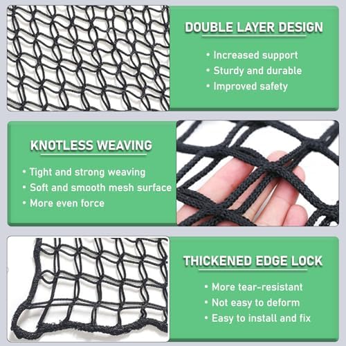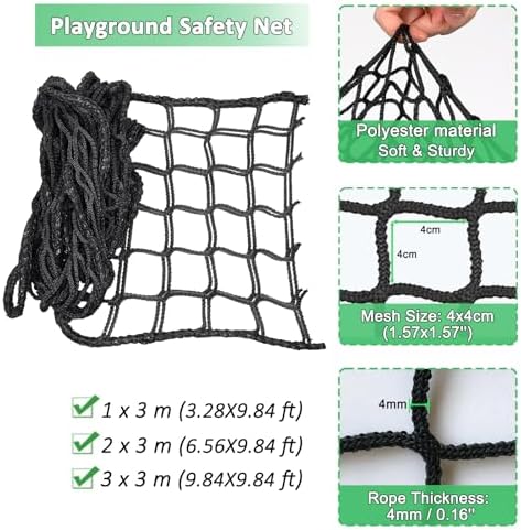 【Materiale durevole e sicuro】 Realizzata in poliestere di alta qualità, la nostra rete da gioco per bambini è resistente agli strappi e alle intemperie, progettata per uso interno ed esterno a lungo termine. Ciò garantisce un ambiente di gioco sicuro per i tuoi bambini, incoraggiando al tempo stesso il gioco attivo e il divertimento fantasioso. Perfetto per illuminare qualsiasi spazio di gioco.,Rete versatile: disponibile in più dimensioni, ciascuna griglia misura 4 x 4 cm con uno spessore di 0,4 cm. I bordi rinforzati sono spessi e bloccati saldamente a 0,8 cm, garantendo una durata eccezionale contro l'usura. Ideale per varie applicazioni, questa rete è perfetta per l'artigianato, il giardinaggio e altro ancora. Migliora i tuoi progetti con una soluzione affidabile e robusta. FACILE INSTALLAZIONE E CONSERVAZIONE: progettato con corde sicure su ogni angolo per un'installazione semplice, mentre i bordi spessi garantiscono un fissaggio sicuro. Basta lavarlo, asciugarlo e piegarlo per riporlo comodamente quando non in uso. Perfetto per attività all'aperto, campeggio o picnic. Questo prodotto combina funzionalità e durata per le tue avventure. Materiale: il filet descalade per bambini svolge diverse funzioni, e comprende le filet de sécurité for les aires de jeux, la Protection du Balcony, les filets de grenier, les hamacs, les filets de charge et les ponts de corde pour les cabanes dans les arbres, ce qui fait un aj out polyvalent à your aire de game. Installazione semplice: Dotato di corde di fissaggio a ogni moneta per un'installazione facile, i bordi laterali consentono una sospensione sicura. Per un utilizzo pratico bastano la conca, la sicura e la pinza per servire.
