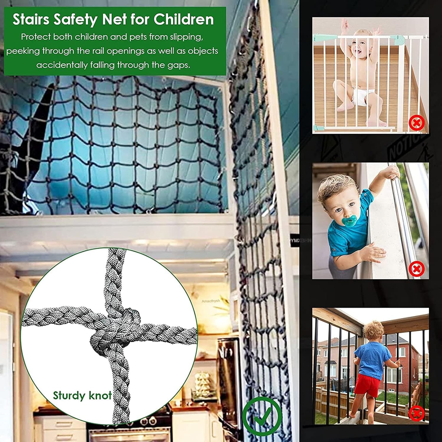 Specifiche della rete in corda: diametro della corda: 14 mm (0,55 pollici), maglia della rete in corda: 20x20 cm (7,9x7,9 pollici); Abbiamo una varietà di dimensioni tra cui scegliere. È possibile personalizzare le reti da arrampicata in altre dimensioni e specifiche. Materiale della rete in corda: la rete da arrampicata è realizzata a mano in corda in fibra di poliammide. La forza è uniforme e non facile da staccare. La superficie in rete è altamente resistente agli urti e portante. È realizzata in treccia multifilo ed è resistente all'usura Protezione di sicurezza: la rete in corda è adatta per balconi, scale, corridoi, cortili, scuole, palestre, campi da gioco e club sportivi per impedire la caduta di persone o oggetti e garantire la sicurezza di animali domestici e persone Rete decorativa multifunzionale: può essere utilizzata all'interno come decorazione, rete per soffitto, rete per pareti fotografiche, rete per asciugatrice e divisorio; può essere utilizzato all'aperto per parchi di divertimento, strutture pubbliche, recinzioni paesaggistiche e protezione di ponti sospesi. Promemoria caldo: dopo aver realizzato la rete di corda, potrebbe esserci un odore che scomparirà dopo la ventilazione e l'asciugatura. La rete in corda di fibra di poliammide diventa grigia dopo aver preso il sole, il che è normale