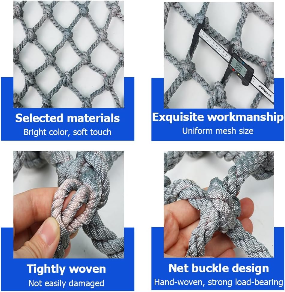Lasciate giocare i vostri bambini in sicurezza: Utilizzando la nostra rete da arrampicata per parchi giochi, i vostri bambini potranno divertirsi in tutta sicurezza e a loro piacimento. Offriamo una varietà di dimensioni tra cui scegliere, con una copertura più ampia: la scelta ideale! Robuste e affidabili: Queste reti di sicurezza sono realizzate con materiali robusti, con uno spessore della corda di 14 mm, una maglia di 10 cm e una capacità di carico fino a 2000 kg. Sono perfette per il gioco all'aperto e al chiuso, offrendo una robusta barriera protettiva. Installazione semplice e comoda da riporre: Senza l'utilizzo di attrezzi speciali, queste reti di sicurezza per parchi giochi sono molto facili da appendere e fissare. Potete fissarle a diverse strutture di divertimento o recinzioni in base alle vostre esigenze. Questo tipo di attrezzatura per parchi giochi ha una vasta gamma di utilizzi: Può essere utilizzata anche come passerella, accessorio per casetta sull'albero e per la sicurezza di scale e recinzioni per balconi. Può essere utilizzata anche per le reti di carico dei camion, il che rappresenta un ottimo investimento! Soddisfa le tue esigenze personalizzate: La rete protettiva può essere personalizzata in base alla distanza della rete e allo spessore della corda desiderati, e supportiamo la personalizzazione di qualsiasi dimensione di corda (lunghezza*larghezza). Se ne hai bisogno, puoi sempre contattarci!
