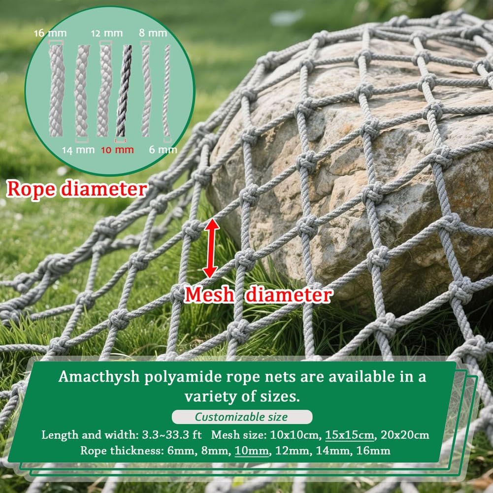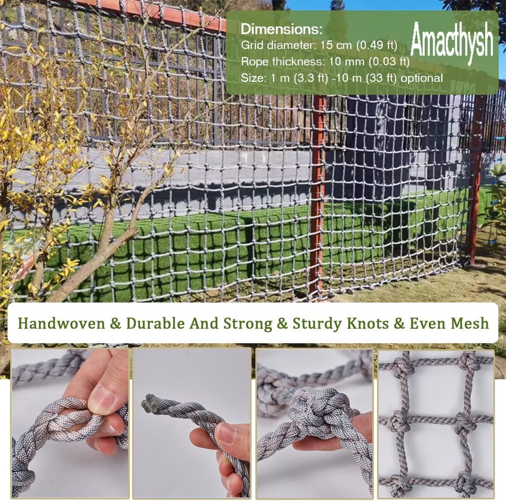 Rete da arrampicata multiuso per bambini: rete da arrampicata per bambini, rete in corda di queste dimensioni viene utilizzata principalmente per l'arrampicata ed è disponibile per bambini normali e adulti, dimensioni di protezione di sicurezza della rete da carico per arrampicata: distanza della griglia 15 cm; Diametro corda 10 mm, lunghezza 1,1 m - 32,8 m, larghezza 1,1 m - 9,8 m, spessore corda regolabile, diametro griglia, lunghezza * larghezza Materiale rete da gioco: reti di sicurezza anti-arrampicata possono essere utilizzate come accessori di gioco, con fibre di poliammide ad alta resistenza, molto adatte per l'uso esterno, dimensioni ridotte, elastico estensibile, buona resistenza agli agenti atmosferici, resistenza all'usura, protezione solare, robusto e durevole, forte capacità di carico, lunga durata Corda stabile per rete da arrampicata Nodi: intrecciati a mano, con nodi di corda più belli, più forti e più sicuri sulla connessione in rete, così puoi arrampicarti meglio senza scivolare e goderti il divertimento dell'arrampicata. Descrizione del cambiamento di colore: il colore originale della rete da arrampicata è rosa, grigio o rosa mescolato con grigio. Se esposto all'aria o alla luce solare, diventa gradualmente grigio. Più lungo è il tempo di esposizione, più scuro diventa il grigio. Ciò non significa che la rete sbiadirà, ma è una caratteristica del prodotto.