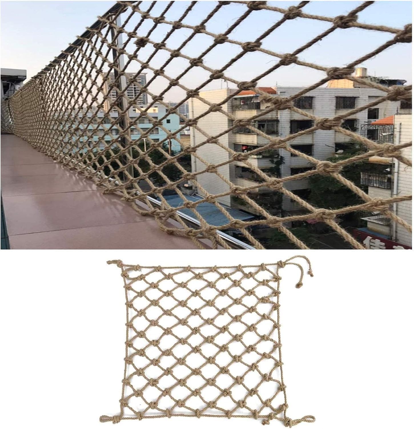 ★ Rete da arrampicata per bambini, resistente, moderatamente morbida, non facile da sbiadire, non ha paura del vento e della pioggia, lunga durata, capacità di carico fino a 350 kg, facile da installare e facile da smontare ★ Rete di sicurezza per ringhiera. Materiale morbido, maglia pesante, ordito e trama multistrato, cablaggio preciso, lavorazione; protezione solare ad alta temperatura, impermeabile; linee chiare, antiscivolo e resistenti all'usura ★ La rete protettiva ha un diametro di 8 mm (0,31 pollici) e una dimensione delle maglie di 12 cm (3,15 pollici). Vi preghiamo di contattarci via e-mail. La rete in corda può essere regolata in base alle dimensioni reali ★ La rete da carico in corda di canapa è realizzata con tessitura a doppio ago senza nodi, rete tessuta a mano e corda di canapa multifilo, ha una forte resistenza agli urti ed è forte anche se utilizzata all'aperto ★ La rete di corda per recinzione multifunzionale è adatta a tutti i tipi di scene, corridoi con porte e finestre, scale, balconi, ringhiere, lettini per bambini, gabbie per animali domestici, asili nido, parchi di divertimento, strutture pubbliche, paesaggi recinzioni, muri esterni e reti fitosanitarie