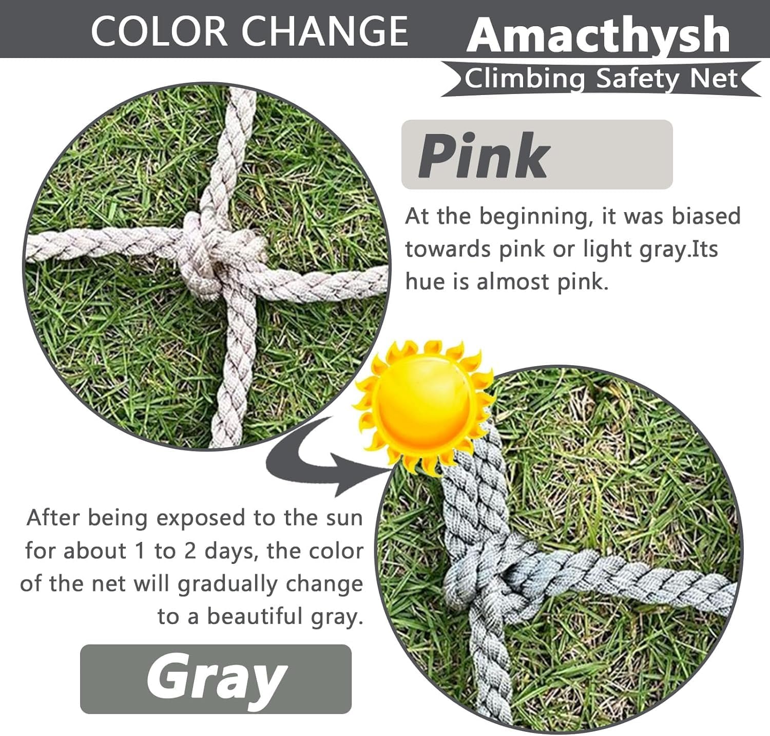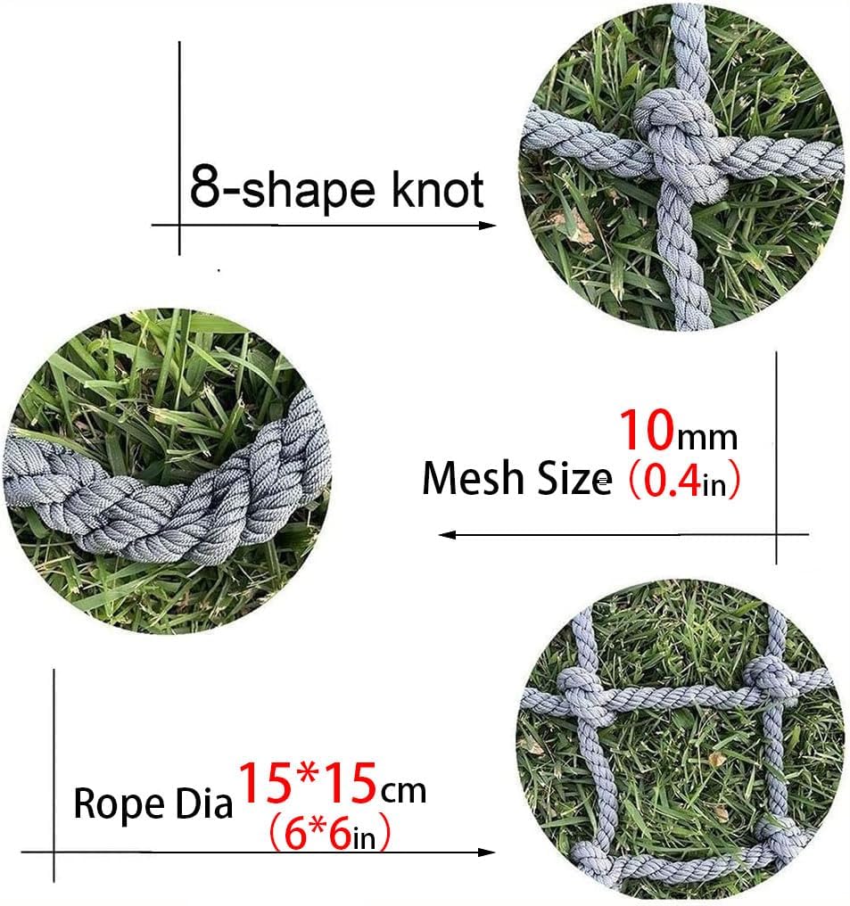 La nostra rete da arrampicata all'aperto è progettata per i bambini e supporta fino a 360 kg. Garantisce sicurezza e durata. Il diametro della corda è di ca. 10 mm e la dimensione delle maglie è di ca. 15 x 15 cm. Sono disponibili diverse dimensioni per ogni situazione. La rete da arrampicata è facile e comoda da montare e può essere facilmente collegata a varie attrezzature per il tempo libero. Abbiamo dotato la rete di una corda aggiuntiva per un facile montaggio. È realizzato in robusta corda in fibra di poliammide di alta qualità con più fili intrecciati con precisione, resistente all'usura, agli urti e durevole, garantendo sicurezza e stabilità, adatta per uso esterno a lungo termine. È accuratamente realizzato a mano da artigiani che tessono reti di corda in modo professionale e la rete è uniforme e bella. Questa rete da arrampicata non è adatta solo per l'arrampicata dei bambini, ma può essere utilizzata anche in molti altri scenari, come altalene, strutture per arrampicata, case sugli alberi, ponti di corda, parchi giochi in giardino, ecc. Allo stesso tempo, è anche una rete di sicurezza ideale per aree come balconi e ringhiere e offre una protezione di sicurezza completa.