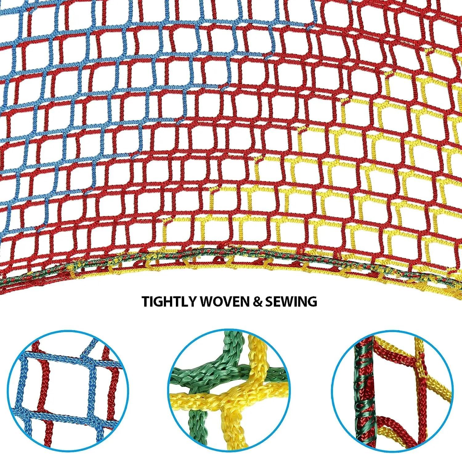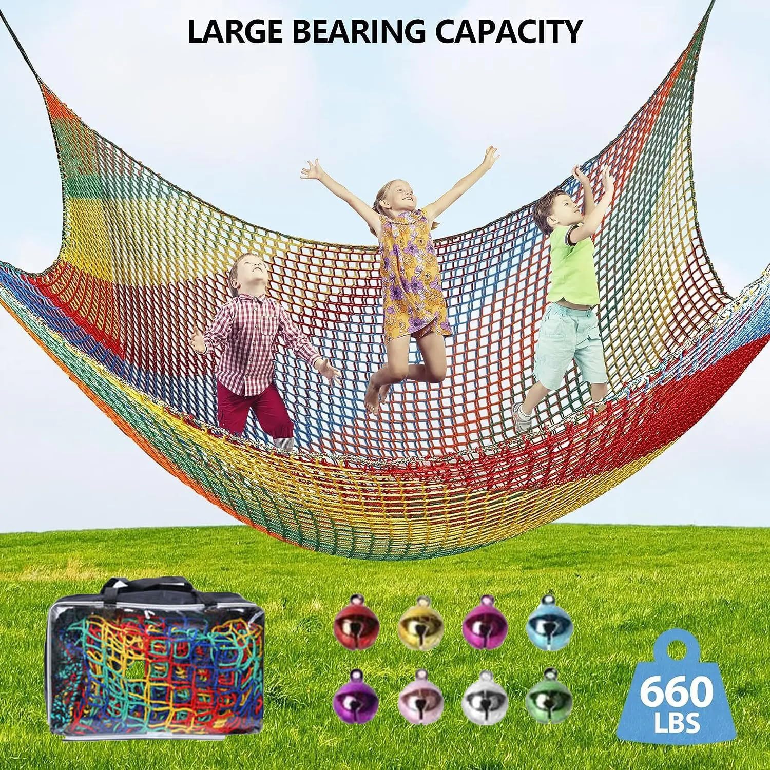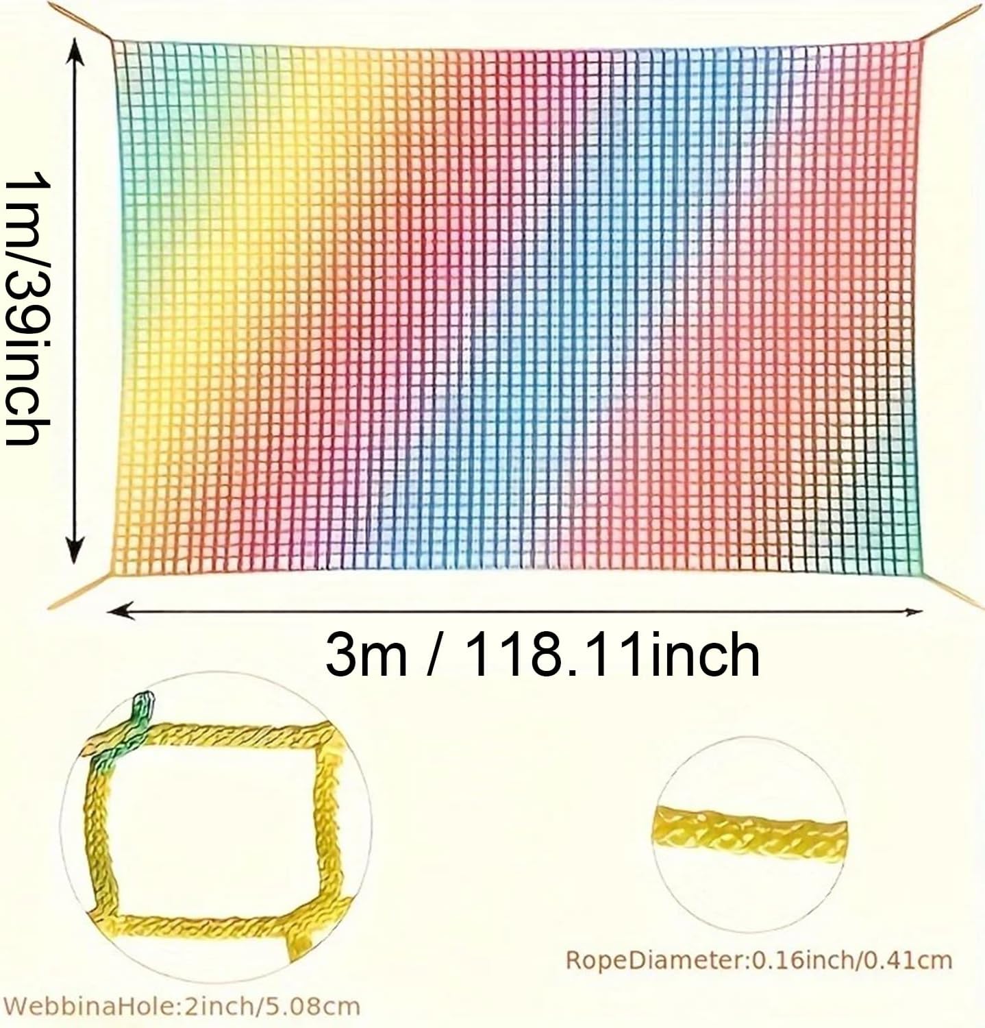 【DOPPIO STRATO RINFORZATO,DESIGN CON BORDI RINFORZATI】Il modello Rete Da Arrampicata Per Parco Giochi presenta un design a doppio strato per garantire maggiore stabilità e sicurezza.La tecnologia di tessitura senza nodi rende la superficie morbida e liscia,con maglie uniformi e una capacità di carico di 500 libbre,offrendo un supporto più confortevole,resistente e stabile durante il gioco. 【MATERIALE RESISTENTE】Il Rete Da Arrampicata Per Parco Giochi è realizzato in nylon e la rete a doppio strato offre un'eccellente resistenza agli urti.Il processo di tessitura a più fili lo rende morbido,resistente,antistrappo,resistente alle intemperie e ai morsi,garantendo un uso prolungato senza rotture,una tensione uniforme e una tenuta ottimale. 【CAMPANELLI COLORATI】Il Rete Da Arrampicata Per Parco Giochi è dotato di numerosi campanelli colorati che emettono un suono cristallino ogni volta che vengono toccati,stimolando lo sviluppo dell'udito e aumentando il divertimento nell'esplorazione! I vivaci colori dell'arcobaleno attirano l'attenzione dei bambini e migliorano la loro percezione visiva.I campanelli sono rimovibili,per poterli abbinare liberamente in base alle proprie preferenze. 【UN OTTIMO COMPAGNO DI CRESCITA】L'arrampicata non solo rafforza i muscoli delle braccia e delle gambe e la forza del tronco dei bambini,ma sviluppa anche il coraggio e la perseveranza attraverso la sfida dell'altezza.Allena la collaborazione di gruppo e le capacità sociali! Il Rete Da Arrampicata Per Parco Giochi è il regalo perfetto per il compleanno o le festività dei bambini,nonché un ideale strumento didattico per le lezioni di educazione fisica all'asilo! 【DIMENSIONI】Il Rete Da Arrampicata Per Parco Giochi misura 1x3 metri,con maglie di 4 cm.Non solo è un ottimo complemento per case sull'albero o strutture per arrampicata,ma può anche essere utilizzato come amaca,ponte sospeso,binario a rete e altro ancora.Adatto a parchi giochi,balconi,scale,animali domestici,bambini e altro,per evitare la caduta di oggetti!