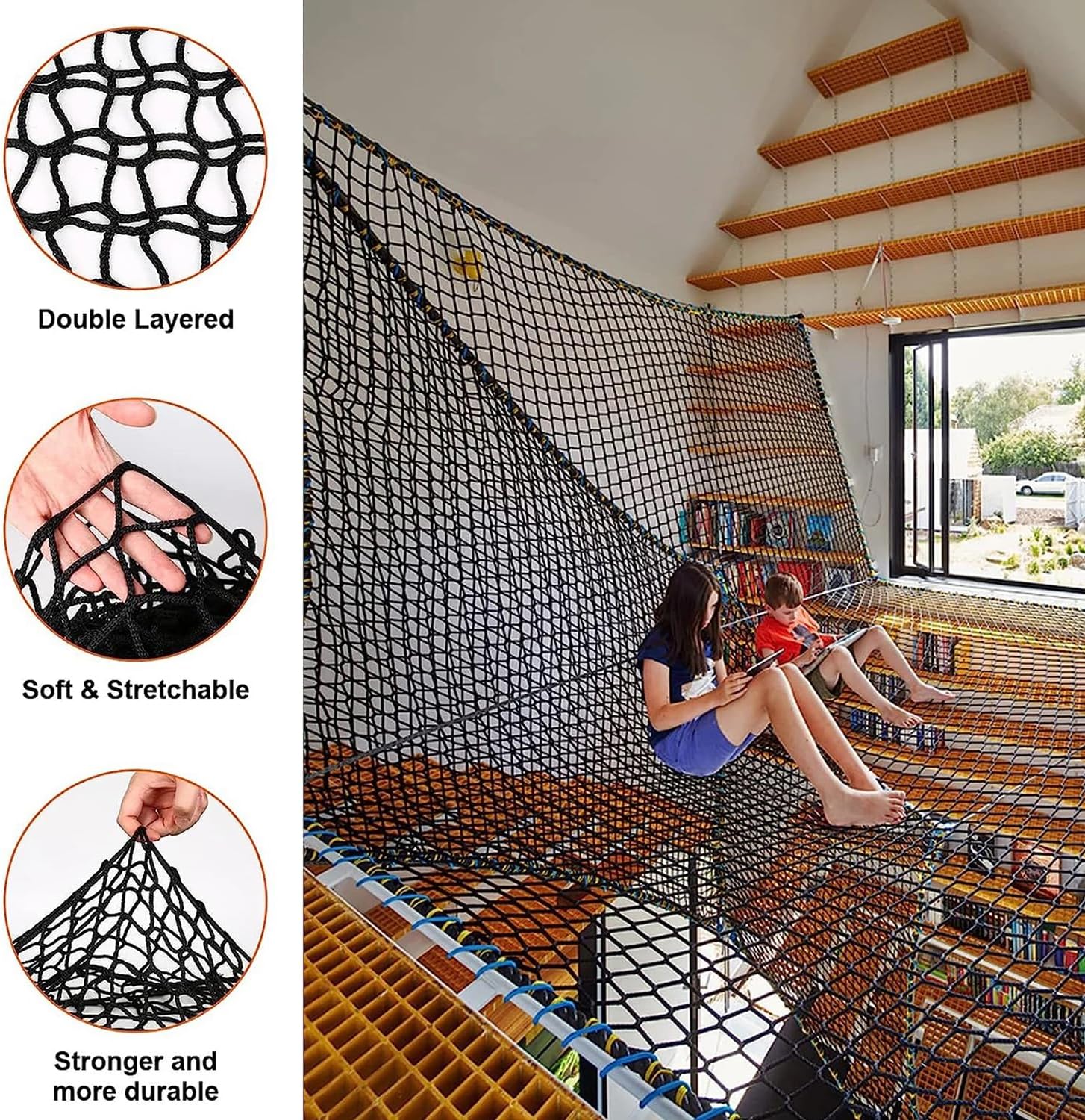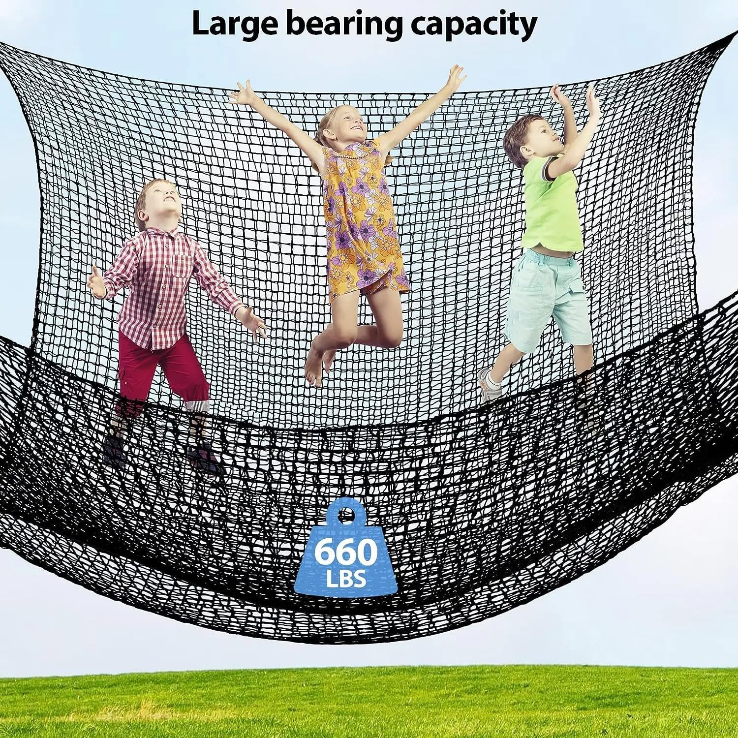 【DOPPIO STRATO RINFORZATO,DESIGN CON BORDI RINFORZATI】Il modello Rete Da Arrampicata Per Parco Giochi presenta un design a doppio strato per garantire maggiore stabilità e sicurezza.La tecnologia di tessitura senza nodi rende la superficie morbida e liscia,con maglie uniformi e una capacità di carico di 500 libbre,offrendo un supporto più confortevole,resistente e stabile durante il gioco. 【MATERIALE RESISTENTE】Il Rete Da Arrampicata Per Parco Giochi è realizzato in nylon e la rete a doppio strato offre un'eccellente resistenza agli urti.Il processo di tessitura a più fili lo rende morbido,resistente,antistrappo,resistente alle intemperie e ai morsi,garantendo un uso prolungato senza rotture,una tensione uniforme e una tenuta ottimale. 【CAMPANELLI COLORATI】Il Rete Da Arrampicata Per Parco Giochi è dotato di numerosi campanelli colorati che emettono un suono cristallino ogni volta che vengono toccati,stimolando lo sviluppo dell'udito e aumentando il divertimento nell'esplorazione! I vivaci colori dell'arcobaleno attirano l'attenzione dei bambini e migliorano la loro percezione visiva.I campanelli sono rimovibili,per poterli abbinare liberamente in base alle proprie preferenze. 【UN OTTIMO COMPAGNO DI CRESCITA】L'arrampicata non solo rafforza i muscoli delle braccia e delle gambe e la forza del tronco dei bambini,ma sviluppa anche il coraggio e la perseveranza attraverso la sfida dell'altezza.Allena la collaborazione di gruppo e le capacità sociali! Il Rete Da Arrampicata Per Parco Giochi è il regalo perfetto per il compleanno o le festività dei bambini,nonché un ideale strumento didattico per le lezioni di educazione fisica all'asilo! 【DIMENSIONI】Il Rete Da Arrampicata Per Parco Giochi misura 1x3 metri,con maglie di 4 cm.Non solo è un ottimo complemento per case sull'albero o strutture per arrampicata,ma può anche essere utilizzato come amaca,ponte sospeso,binario a rete e altro ancora.Adatto a parchi giochi,balconi,scale,animali domestici,bambini e altro,per evitare la caduta di oggetti!