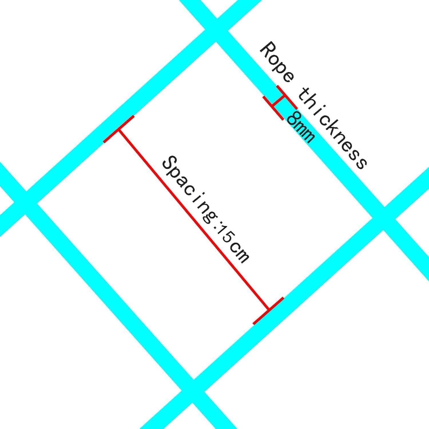 Rete decorativa ecologica per interni: realizzata con materiali sostenibili, questa rete migliora il tuo spazio interno senza l'uso di rifiuti riciclati, garantendo un ambiente piacevole privo di odori sgradevoli. Semplice processo di installazione: progettata per ambienti interni ed esterni, questa scala per arrampicata può essere facilmente attaccata a altalene, palestre della giungla o ponti, offrendo un uso versatile in vari orientamenti per promuovere lo sviluppo fisico. Durevole e sicuro per i bambini: dotato di una rete protettiva con morbidezza ottimale, resistenza allo sbiadimento e qualità resistente alle intemperie, supporta fino a 300 kg, garantendo un uso duraturo e sicurezza durante le attività all'aperto. Caratteristiche di sicurezza migliorate: specificamente progettata per evitare che i bambini scivolino attraverso, questa rete da arrampicata fornisce un'area giochi sicura, proteggendo da incidenti su balconi, scale o parchi giochi. Applicazione versatile: ideale per parchi giochi, questa rete a corda serve a molteplici scopi, dall'arrampicata al fitness, adatta per bambini dai 3 anni in su e adulti, rendendola un'aggiunta perfetta a qualsiasi spazio ricreativo.