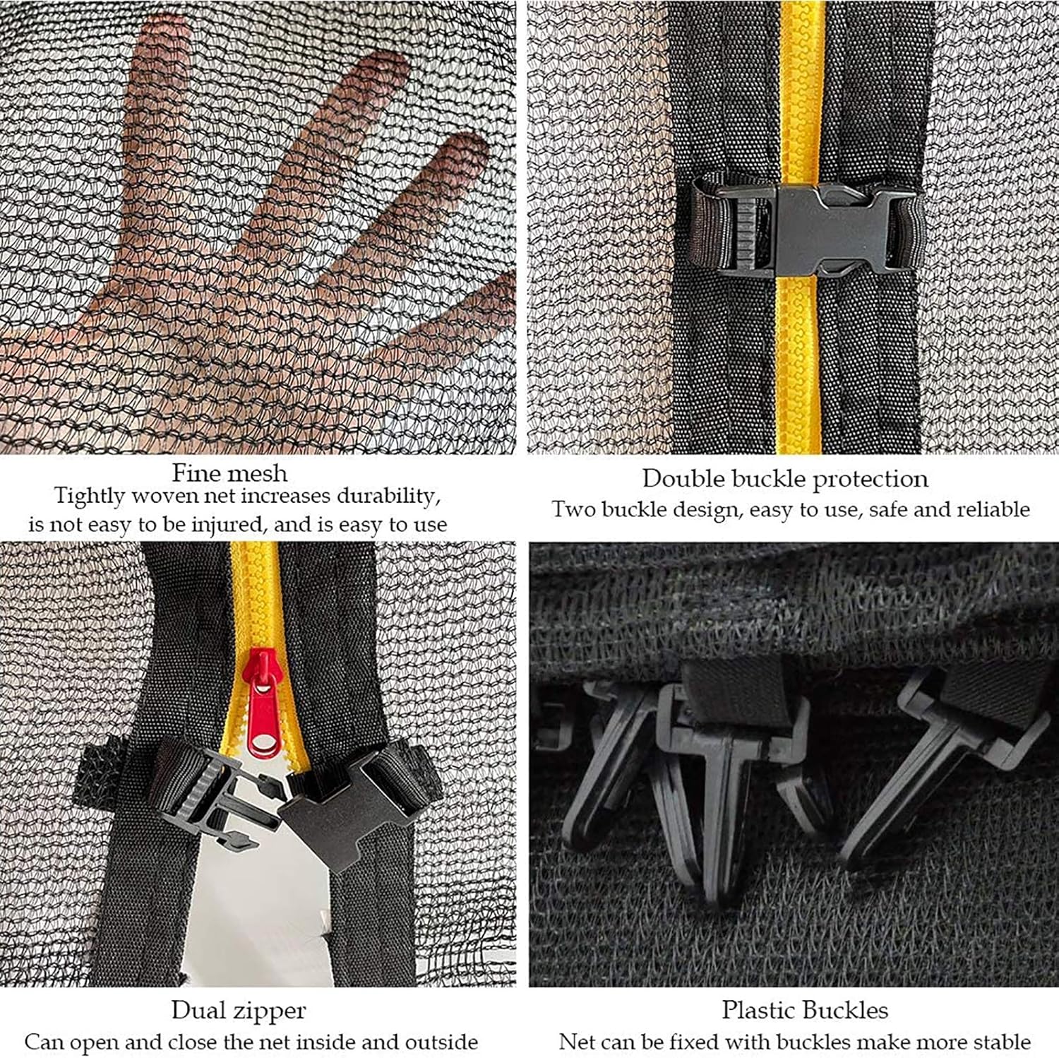 MATERIALE: Realizzato in polietilene flessibile di alta qualità, resistente ai raggi UV, non sbiadisce e ad alta densità di maglia, che è molto durevole e resistente all'usura. INGRESSO STELLA: l'ingresso è cucito lateralmente. Si apre facilmente grazie alla chiusura con cerniera e gancio. La barra fissa del trampolino è avvolta in una copertura protettiva. COMPATIBILE CON TRAMPOLINO: aperto con cerniera dall'interno e cerniera e gancio a molla dall'esterno. La rete di protezione del trampolino è compatibile con la maggior parte delle principali marche di trampolini. MASSIMA SICUREZZA: La rete del trampolino offre la migliore protezione contro gli infortuni, soprattutto per i bambini per evitare incidenti. CON DESIGN CON CERNIERA: la rete di sicurezza è fissata al trampolino utilizzando i moschettoni forniti. La cerniera attaccata, progettata per aprire e chiudere la rete, garantisce un'entrata e un'uscita facile e sicura dal palo del tram.