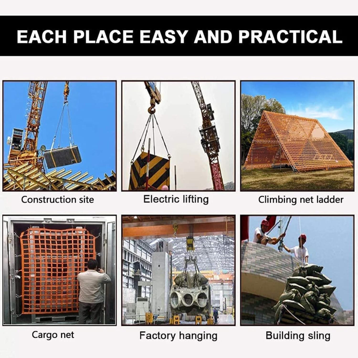 Portatile: facile da usare, puoi riunire le merci che vuoi sollevare e sollevarle, il che può aiutarti a risparmiare manodopera, materiali e risorse finanziarie e a migliorare l'efficienza del carico e dello scarico delle merci. Durevole e ad alta resistenza: non sbiadisce facilmente, ha una buona resistenza all'usura, non si strappa facilmente e ha una struttura robusta, che può essere utilizzata a lungo. Materiale ad alta resistenza: cinghia di sollevamento di sicurezza in poliestere ad alta resistenza, può essere utilizzata for il contenimento del carico, il sollevamento di pallet e l'uso della gru Molteplici usi: ideale for sollevare o legare carichi, reti for carichi pesanti. Può essere utilizzata for sollevare oggetti portanti in ingegneria e può essere utilizzata anche for reti di protezione for scale domestiche, reti da arrampicata for esterni, reti di sicurezza, ecc. È ampiamente utilizzato in molti settori come l'edilizia, la cantieristica navale, i porti e l'industria petrolifera