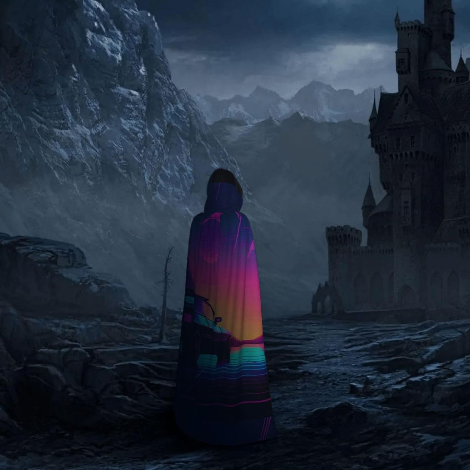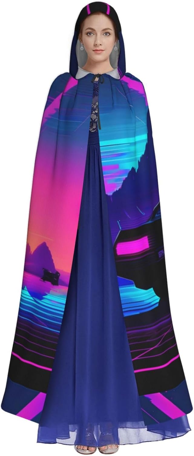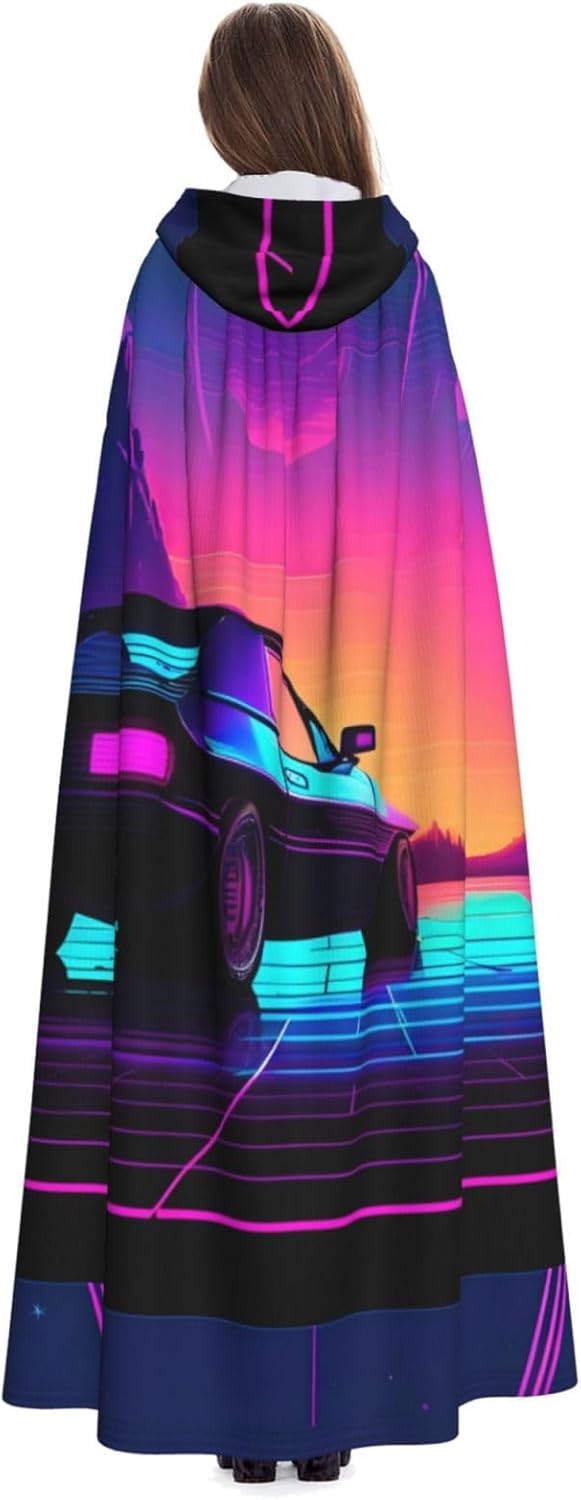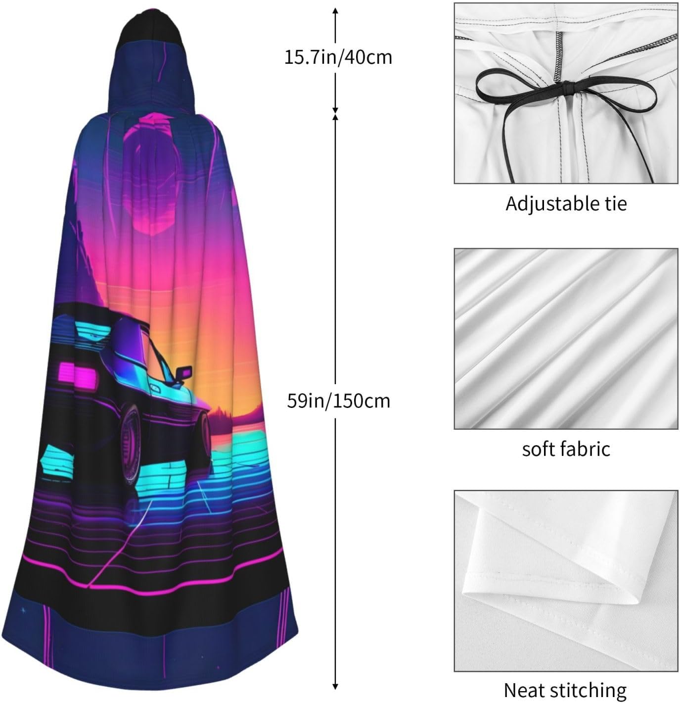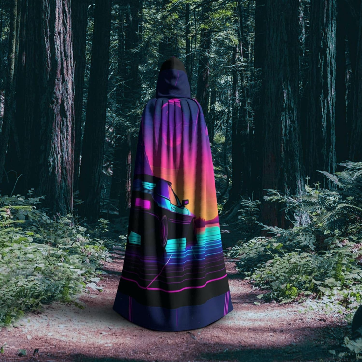Retrowave - Mantello con cappuccio con stampa, unisex, per cosplay, Halloween, carnevale, forniture