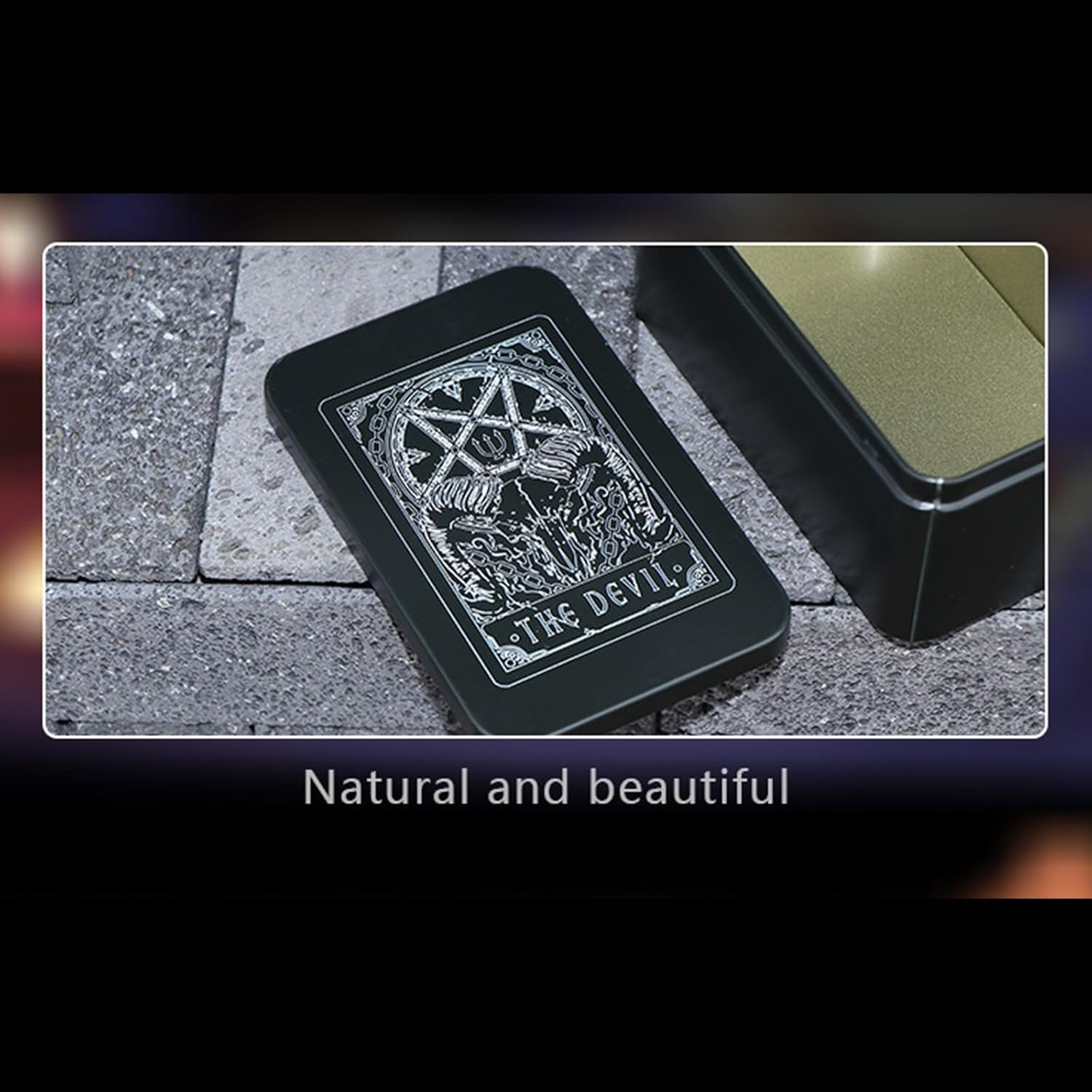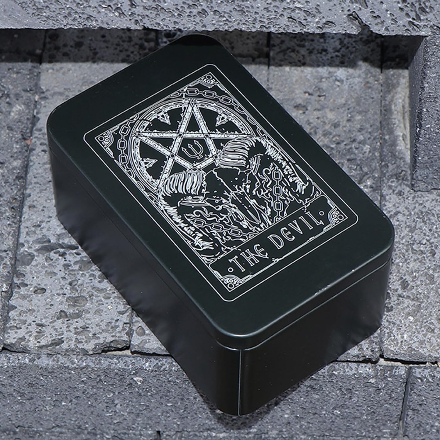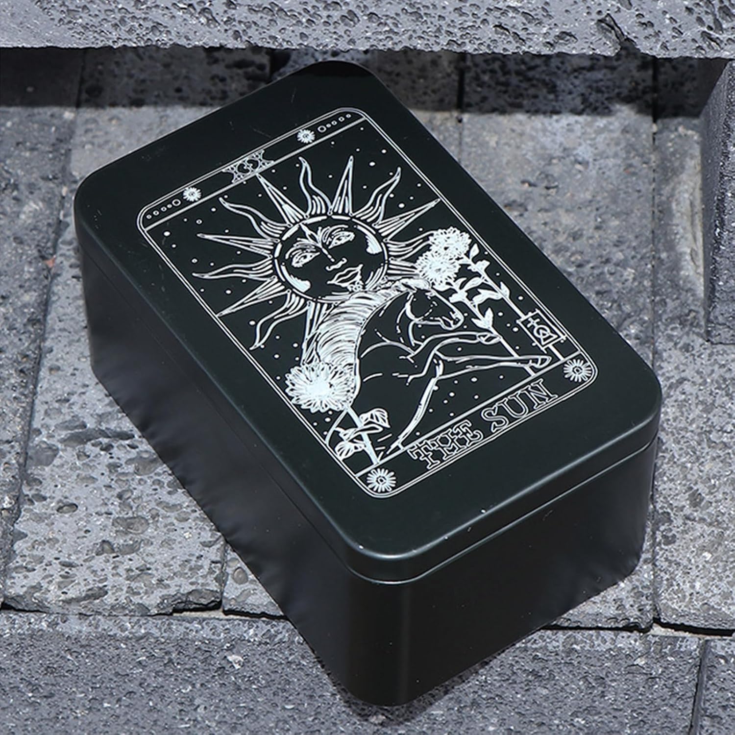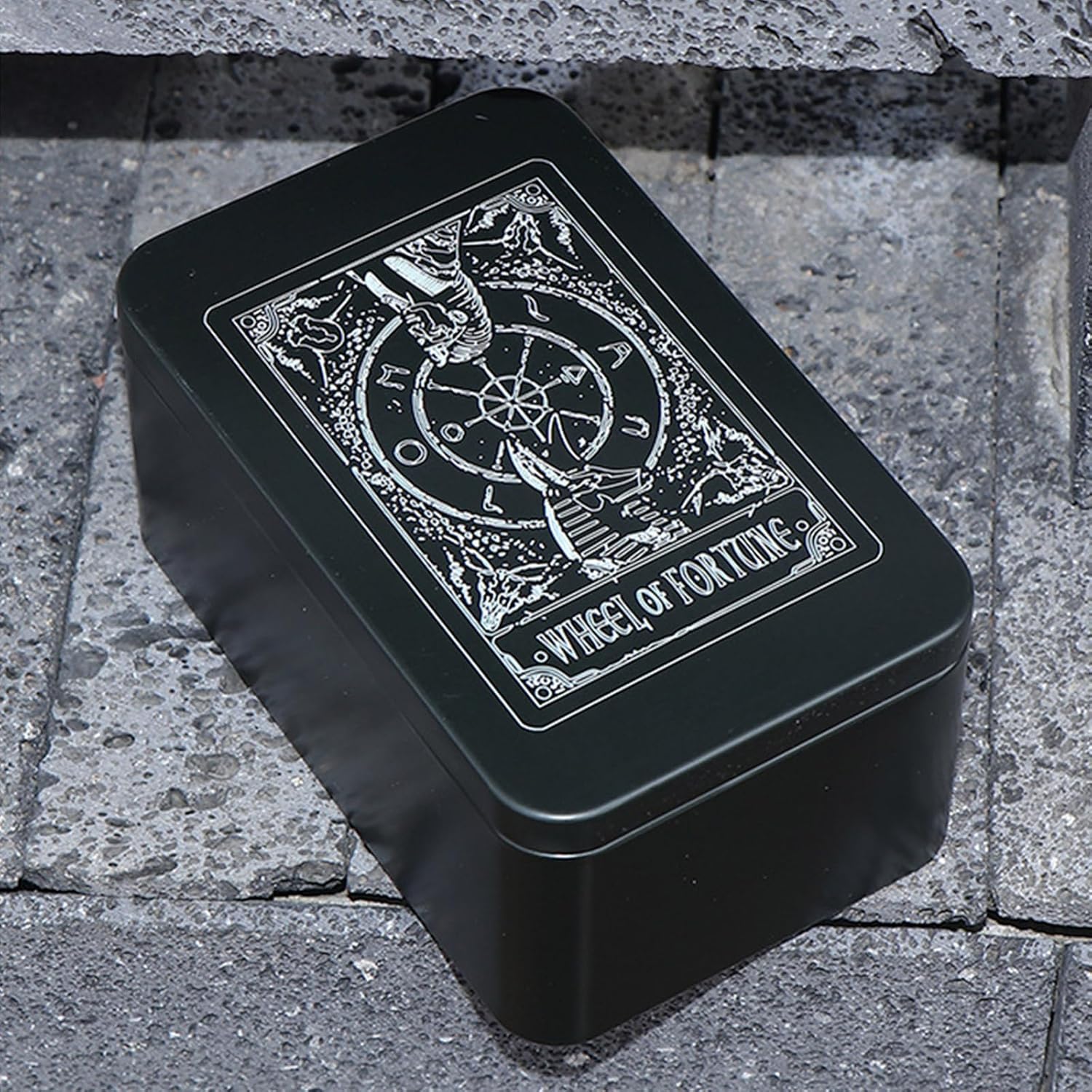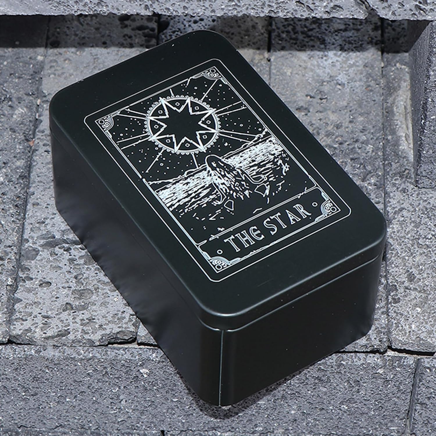 Realizzato in materiale di ferro, garantisce durata e conservazione. Grazie al formato tascabile, è facile da trasportare e riporre e offre comfort durante i viaggi e a casa. Mantieni la tua collezione di carte organizzata e sicura con questa scatola di carte da gioco da tavolo di alta qualità, perfetta per conservare carte dei tarocchi, carte da gioco e carte da tavolo dei tarocchi. stesso, si partecipa a una conferenza di gioco o semplicemente trascorrere qualche ora di relax a casa, questa scatola offre una soluzione di archiviazione sicura e pratica per le vostre carte. La struttura semplice e robusta offre una conservazione funzionale e allo stesso tempo protegge le tue carte. Mostra le tue carte ben organizzate e stupisci i tuoi compagni di squadra con questa soluzione di archiviazione affidabile. Questa scatola di carte multifunzionale è stata progettata per appassionati e collezionisti di carte ed è adatta a tutti coloro che vogliono mantenere la propria collezione di carte ordinata e ben organizzata.
