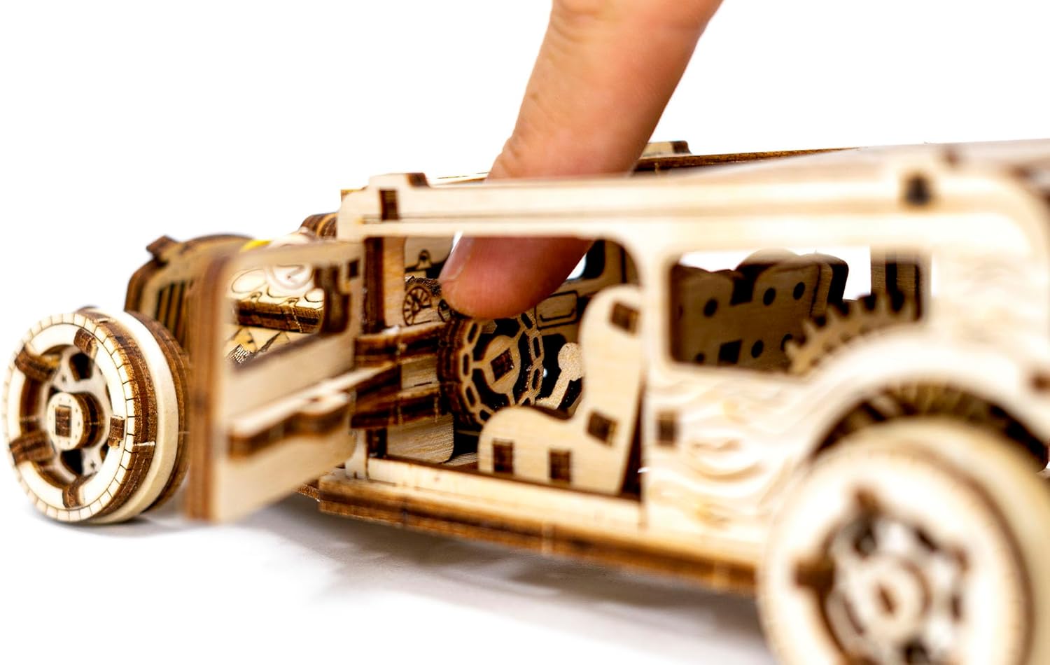 PICCOLE AVVENTURE: Kit di modellini in legno altamente dettagliati con dettagli unici e funzioni aggiuntive. Materiali sostenibili utilizzati in tutta la costruzione. Progetti divertenti altamente educativi per tutta la famiglia Precisione di taglio laser: tutte le parti sono tagliate al laser per un bordo pulito e una vestibilità perfetta; aggiungendo ancora maggiore autenticità a tutti i progetti di modelli in legno Revell Tiny Adventures PULL BACK & GO: include elastico pull back and go motore per avventure veloci una volta completato il modello Tiny Adventures Hot Rod Sistema plug-in: goditi un grande divertimento con il preciso sistema plug-in. Le parti in legno stampate e tagliate al laser di alta qualità e le uniche funzioni aggiuntive del tuo modello Tiny Adventures fanno brillare il tuo lavoro