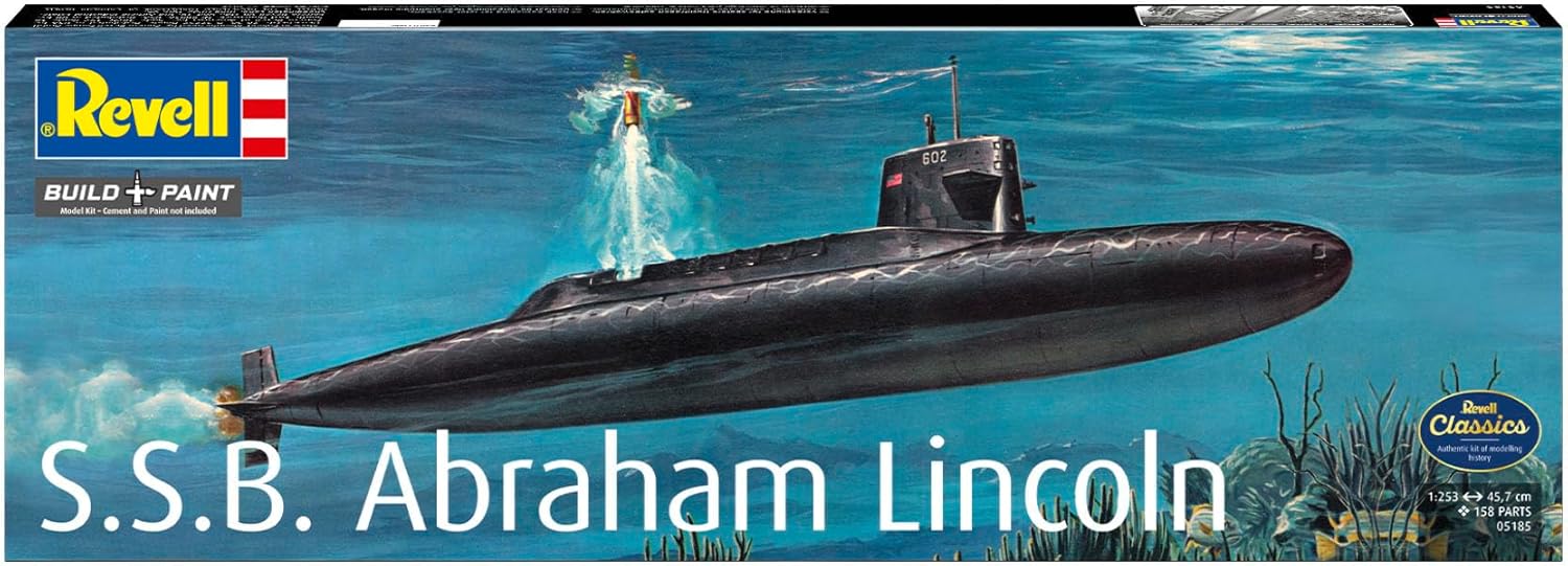 S.S.B. Abraham Lincoln con interni - leggendario sottomarino della Marina degli Stati Uniti in scala 1:253 Immergiti nell'affascinante storia della Guerra Fredda con questo dettagliato kit modello della USS Abraham Lincoln. Il modello convince con la sua autentica rappresentazione del sottomarino storico compreso l'interno completamente attrezzato. Interni completamente attrezzati con centro di comando, alloggi equipaggio e sala macchine Timoni mobili e silos missilistici replicati con precisione