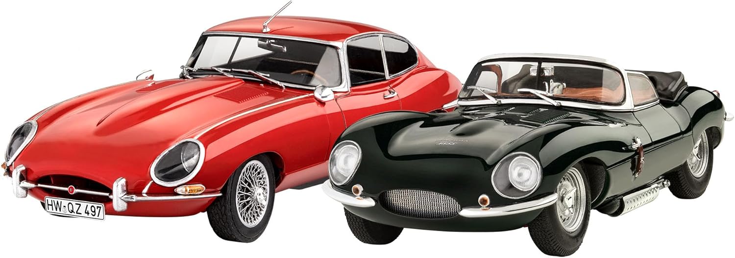 EDIZIONE DA COLLEZIONE LIMITATA: questa edizione da collezione Jaguar 100th Anniversary include kit modello di due veicoli iconici. Con questa edizione esclusiva hai l'opportunità di ricreare l'auto da corsa D-Type e l'auto sportiva E-Type, che occupano entrambe un posto importante nella storia della Jaguar. REPLICA FINE AI DETTAGLI: I kit modello offrono carrozzerie riprodotte fedelmente che riflettono le caratteristiche e le linee caratteristiche dei veicoli. I motori dettagliati sono progettati in più parti e consentono una rappresentazione realistica dei componenti tecnici. PARTI CROMATE E DECALCOMANIE: I kit modello contengono varie parti cromate che conferiscono ai veicoli un aspetto lucido e autentico. Le decalcomanie consentono di rappresentare varie targhe, tra cui Germania, Austria, Svizzera, Francia, Belgio, Paesi Bassi, Gran Bretagna, Italia e USA. Ciò consente di aggiungere la targa appropriata al modello e ottenere una rappresentazione ancora più realistica. DIMENSIONI DETTAGLIATE: La Jaguar E-Type ha una lunghezza di 18,7 cm, una larghezza di 7,2 cm e un'altezza di 5,1 cm. La Jaguar XK-SS è lunga 16,6 cm, larga 6,8 cm e alta 4,7 cm. Queste dimensioni consentono una replica precisa e fedele in scala dei veicoli. AMPIO SET REGALO: Oltre ai kit modello, l'edizione da collezione contiene colori di base, colla e pennelli. Ciò significa che hai tutto a portata di mano per iniziare subito a costruire e progettare i veicoli secondo le tue idee.