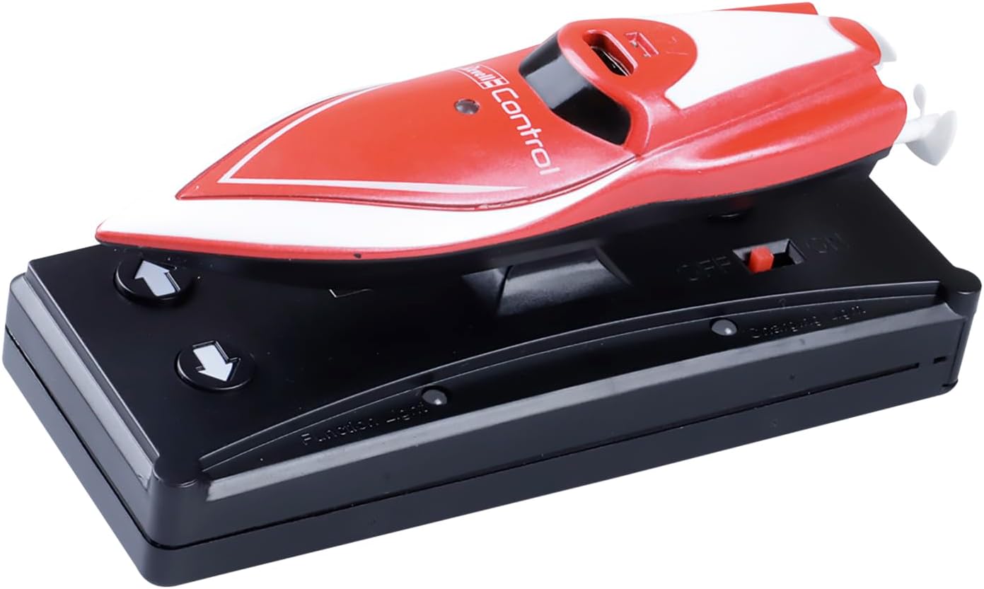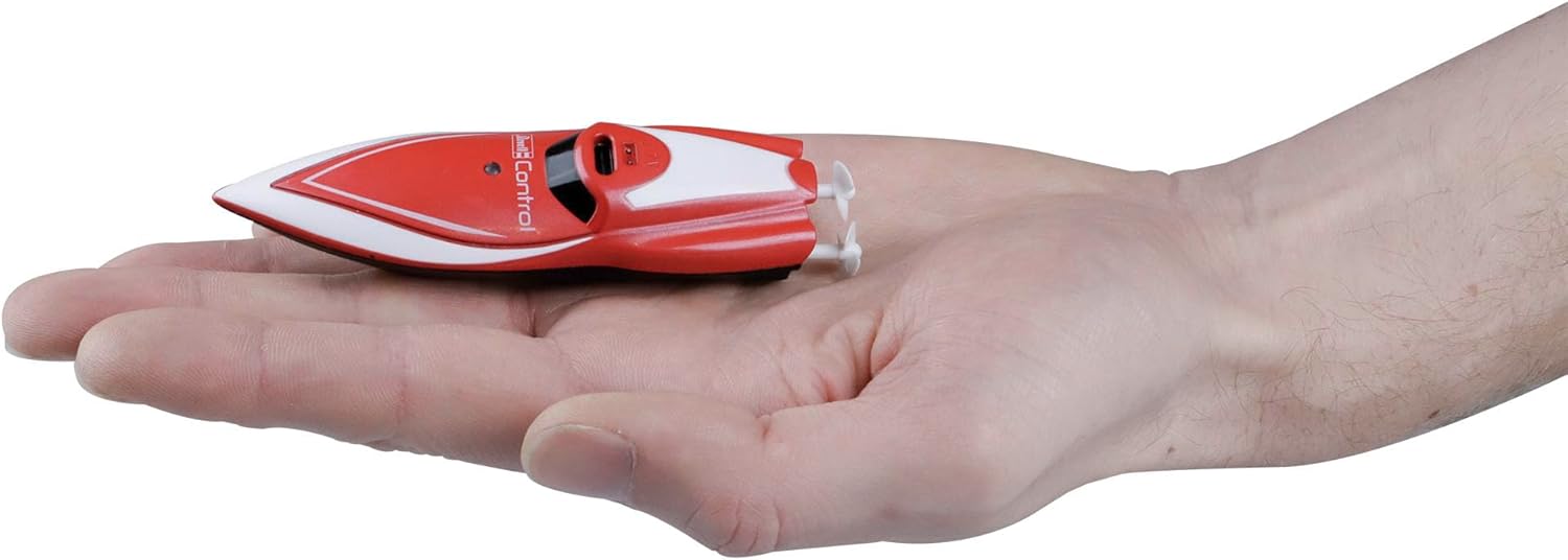 Mini barca RC "rossa": la mini barca RC in rosso brillante è un giocattolo emozionante per bambini e un regalo ideale per il compleanno dei bambini. Viene fornito in un attraente imballaggio in scatola ed è pronto per l'uso. TELECOMANDO 2.4 GHZ: il mini barca viene fornito con un telecomando a 2.4 GHz, che consente un controllo preciso e una portata fino a diversi metri. I bambini possono facilmente controllare la barca e vivere emozionanti avventure sull'acqua. CIRCUITO DI SICUREZZA E SICUREZZA: la mini barca RC è dotata di un circuito di sicurezza che protegge dal sovraccarico e prolunga la durata della barca. Inoltre è a prova di capovolgimento, in modo che rimanga stabile anche in caso di onde o acqua agitata. BATTERIA E CARICATORE INCLUSO: la Mini barca RC viene fornita con una batteria ricaricabile e un caricabatterie, in modo che i bambini possano iniziare immediatamente senza dover acquistare batterie aggiuntive. La batteria garantisce un divertimento duraturo. A partire dagli 8 anni: la mini barca RC è adatta per bambini a partire dagli 8 anni e offre loro la possibilità di migliorare le loro abilità di controllo remoto e di sperimentare emozionanti giochi d'acqua. Promuove la coordinazione occhio-mano e la comprensione tecnica.