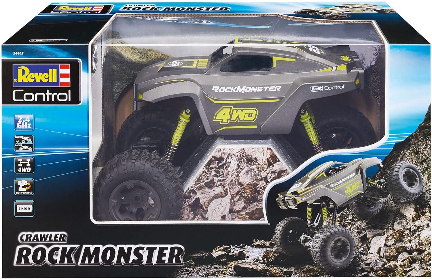 Revell Control 24462 Monster Rock cingolato RC, Telecomando da 2,4 GHz, Carrello di atterraggio proporzionale, Regolabile in Altezza, Auto con Telecomando Destro e Sinistro, 43 cm