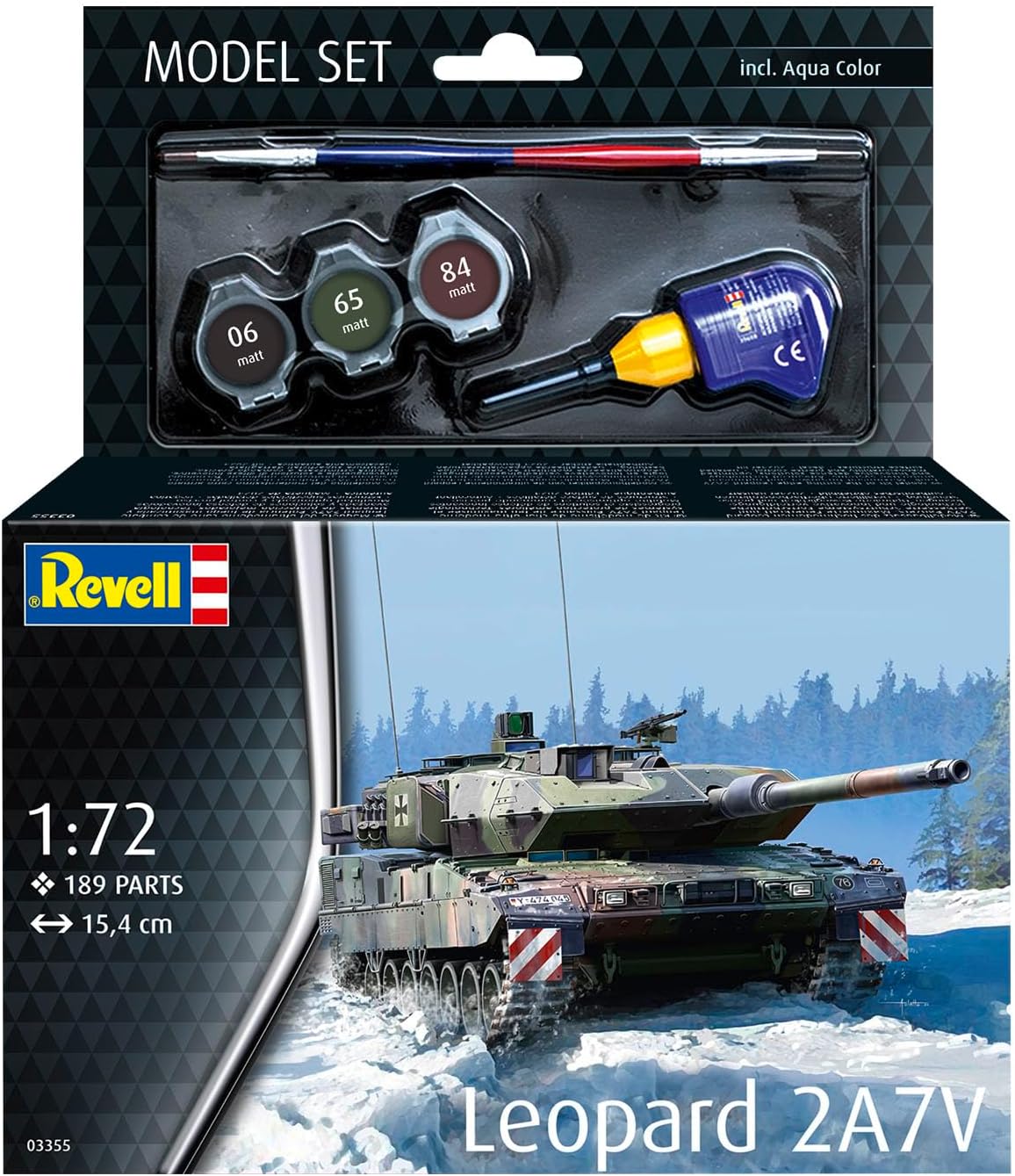 PANNELLO DA LOTTO MODERNIZZATO: il Leopard 2 A7V è una delle versioni più moderne del carro armato tedesco ed è sinonimo di massima potenza in protezione e mobilità. STRUTTURE SUPERFICIE DETALIZZATE FINITAMENTE: il modellino offre dettagli raffinati che riproducono fedelmente la struttura e l'aspetto del carro armato. TORRE GIREVOLE E CATENA IN DUE PEZZI: con una torre girevole e una catena a due pezzi, il modello offre un'elevata flessibilità e una rappresentazione autentica. ROBUSTO ED AUTENTICO: il Leopard 2 A7V è noto per la sua resistenza e le innovazioni tecniche, che risaltano in modo impressionante nel kit di modellismo. ACCESSORI INCLUSI: colori di base, colla e pennello sono inclusi nel set, in modo che il modello possa essere costruito e dipinto direttamente.
