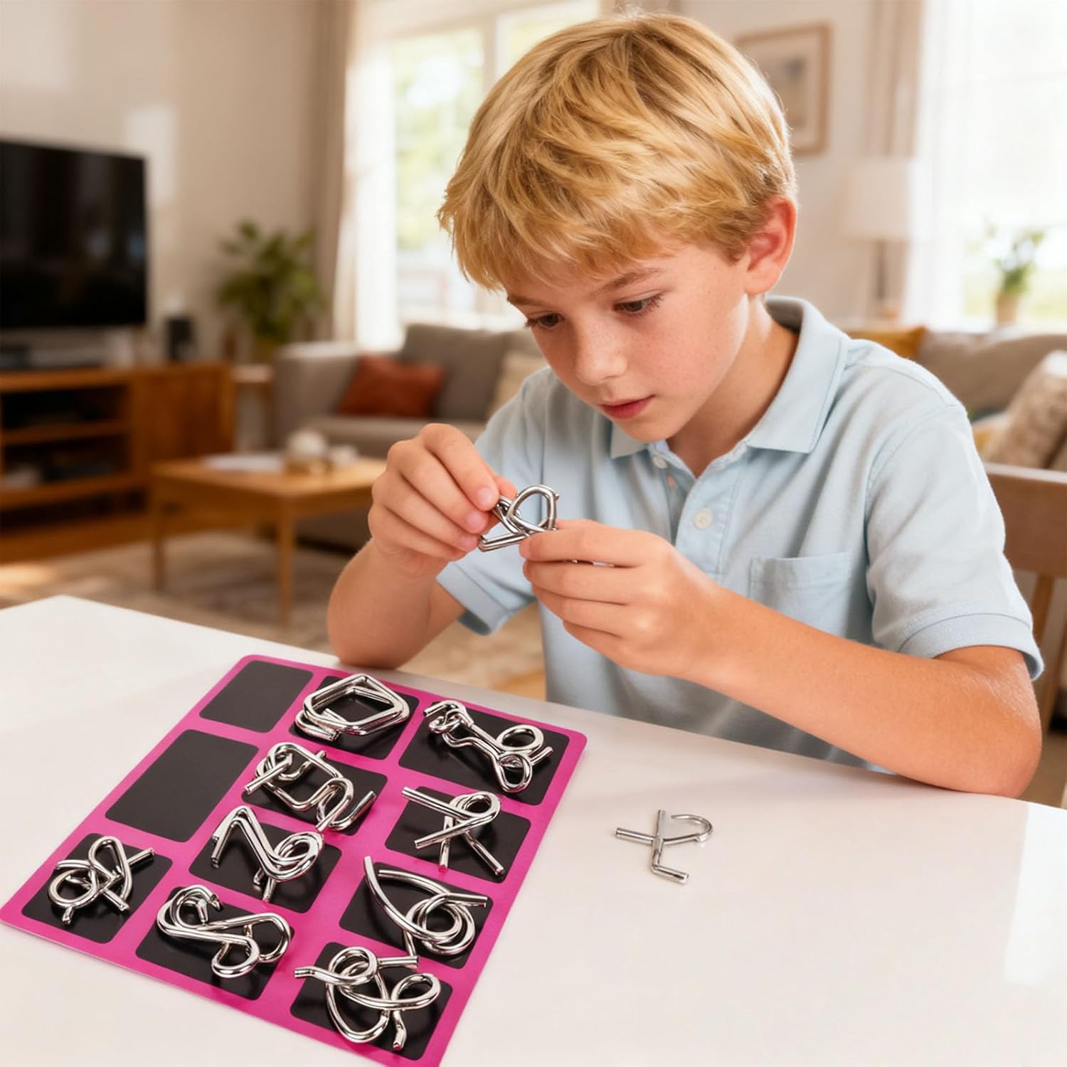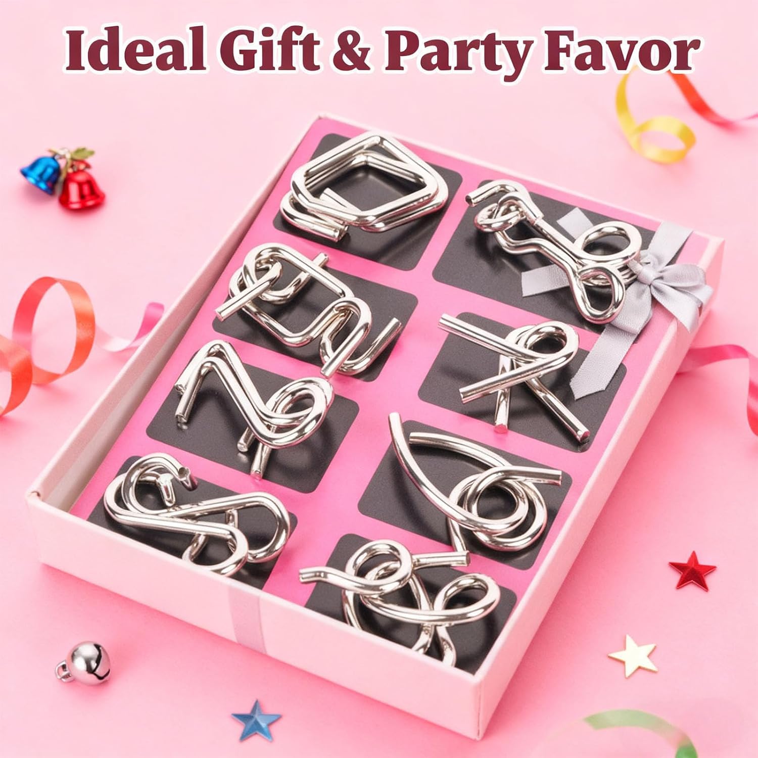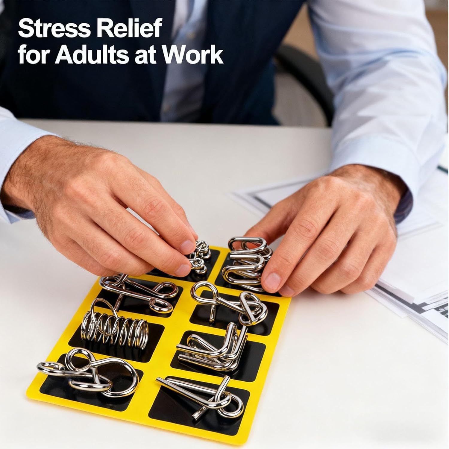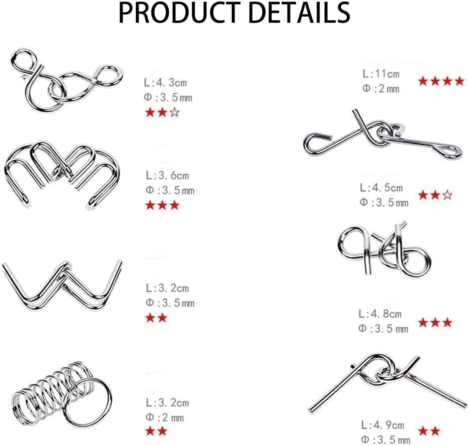 【Challenge Your Mind with Reverse Thinking Puzzles】 Enjoy 24 unique reverse thinking puzzles designed to train logical reasoning and creative problem-solving. Each brain teaser puzzle features a different metal puzzle shape to unlock, making it a fun way to sharpen focus and reduce screen time at home, school, or office. 【Boost Concentration & Patience through Play】 These reverse thinking puzzles promote patience and focus while offering relaxing fun. The step-by-step physics mind metal puzzles unlock interlock game stimulates attention span and memory, turning every puzzle into a rewarding mental workout for students, office workers, or seniors seeking daily brain teaser puzzles for adults. 【Durable & Safe Metal Construction】 Crafted from smooth, rust-resistant stainless steel, these metal puzzles ensure lasting durability and handling. The burr-free finish prevents scratches, making them ideal metal puzzles brain teasers for continuous use for reverse thinking puzzles sessions in classrooms or travel use. 【Portable Fun Anywhere You Go】 Whether you’re traveling, taking a break at work, or playing at home, these compact metal brain teaser puzzles fit easily in your bag for quick cognitive refreshers, team-building events, or party favors for adults. 【Educational Gift & Party Game】 Inspired by traditional logic puzzles and modern reverse thinking puzzles design, this set doubles as an educational toy and stress relief game. A thoughtful present for birthdays, Christmas, or office exchanges, these brain puzzles entertain while strengthening problem-solving skills—ideal adult party favors and family games.