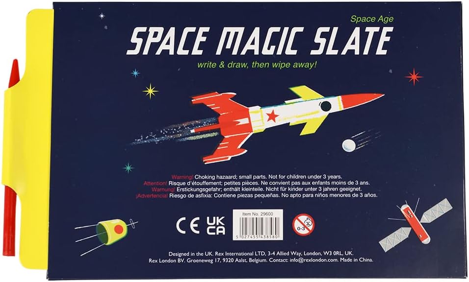 I bambini possono disegnare, scarabocchiare, cancellare e ricominciare da capo con questa classica lavagna magica. Viene fornito con stilo in plastica. La finestra misura 15 cm (lunghezza) x 9,3 cm (larghezza). Parte della nostra collezione Space Age. Non adatta a bambini di età inferiore a 3 anni. Pericolo di soffocamento a causa di piccole parti. Dimensioni: 20,8 x 12,9 x 0,6 cm