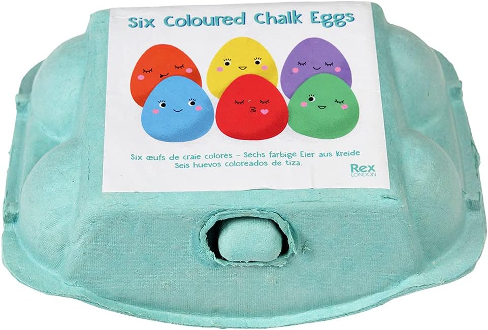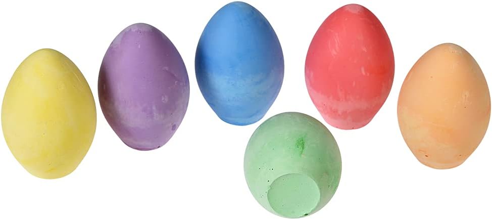 Ideale per giovani artisti, per creare opere d'arte su cortili o per creare segni all'aperto Queste uova dai colori vivaci sono atossiche e lavabili. Fornito in una pratica scatola di cartone per uova Perfettamente formato per le piccole mani da tenere I colori includono rosa, verde, arancione, blu, giallo e viola