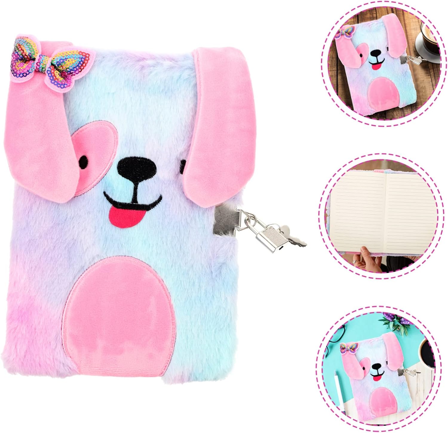 Diario con serratura per ragazze: quaderno a righe di carta con adorabile motivo in peluche, colori sfocati e fantastici, quaderno per bambini Diario di peluche: l'aspetto carino e piacevole tatto deve essere il favore dei bambini, ai tuoi bambini piacerà molto, diario delle ragazze Quaderni con serratura: la scrittura è liscia, non permeabile, copertina in peluche di cartone animato, questo quaderno è una buona scelta per scrivere diari, quaderni Diario: la dimensione del taccuino è giusta e questo taccuino è facile da trasportare e riporre senza problemi, diario con serratura Taccuino con serratura: carta liscia, puoi scrivere la tua esperienza unica su questo taccuino, diario per ragazze