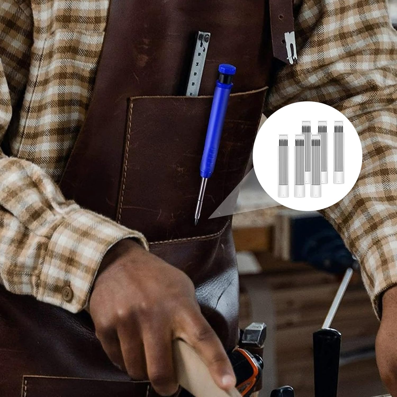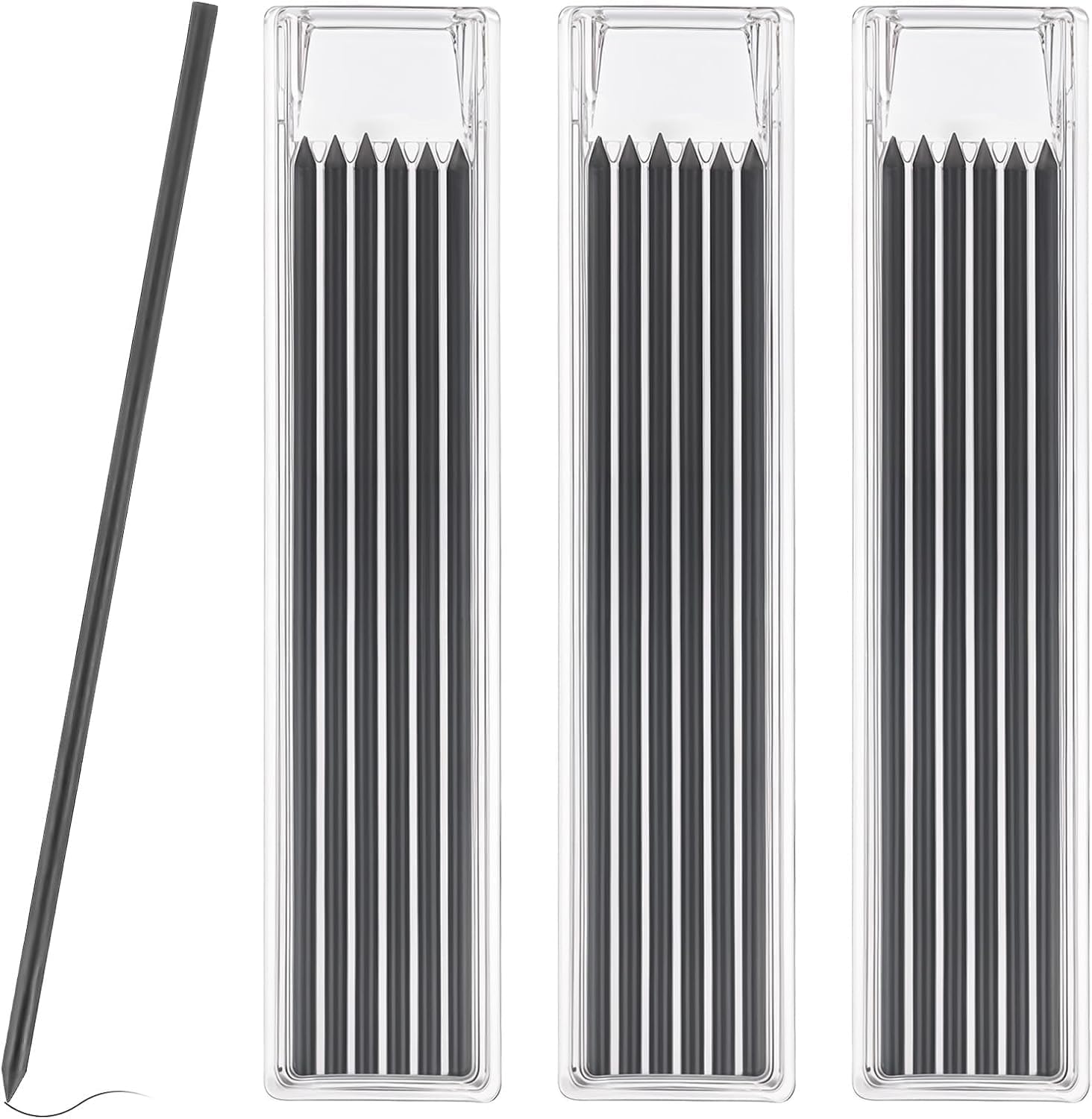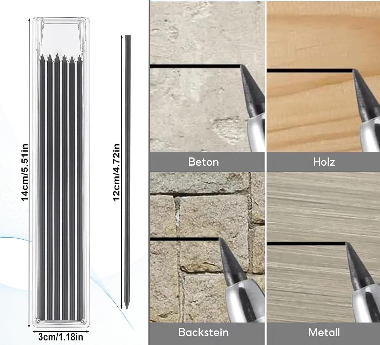 Marcatura precisa: la mina per matite con fori profondi può facilmente creare segni precisi in fessure strette o fori profondi e la lunghezza di 120 mm garantisce un intervallo di marcatura sufficiente, il che migliora notevolmente l'efficienza del lavoro. È ideale per matite con fori profondi e matite da falegname. Materiale impermeabile: realizzate in grafite di prima qualità, queste ricariche per matite da carpentiere presentano elevata durezza e stabilità, rendendole resistenti all'umidità e impermeabili. Anche sotto la pioggia battente, le tue marcature rimarranno intatte, perfette per progetti all'aperto. Queste ricariche di piombo presentano notevole durezza e stabilità, garantendo prestazioni costanti in condizioni difficili. Versatile: le ricariche per matite da carpentiere solide possono essere disegnate su vetro, piastrelle di ceramica, metallo, legno, carta e altre superfici. Le nostre ricariche per mine Fentar sono compatibili con matite Tracer e matite Pica, matite da falegname, matite da carpentiere, matite meccaniche, ecc. Confezione pratica: tutte le ricariche sono inserite in scatole di plastica con coperchio scorrevole, facili da estrarre e inserire. Spingere il coperchio di plastica per rimuovere la ricarica, la scatola ha 6 scanalature per ogni ricarica, comode per rimuovere la ricarica ed evitare efficacemente la rottura della ricarica. Matita per fori profondi: la matita per fori profondi da carpentiere 14*3 cm/5,46*1,17 pollici progettata con punta estesa e a punta di ago di 45 mm di lunghezza, raggiungendo aree difficili da raggiungere dove altri pennarelli da carpentiere non possono andare, come fori o in altri spazi stretti