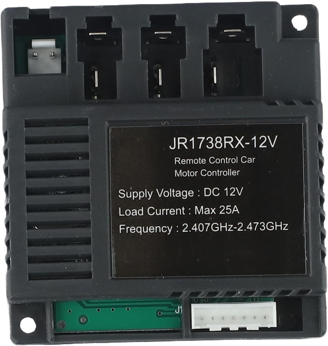 [Compatibilità versatile]: questo ricevitore elettrico per auto per bambini è compatibile con diversi modelli, tra cui JR1705RX, JR1858RX, JR1758RX, JR1738RX, JR1810RX, JR1958-2S e JR1788RX. Il controller funziona con veicoli elettrici per bambini da 6 V e 12 V, rendendolo un pratico pezzo di ricambio per il giocattolo che indossa il tuo bambino quando il ricevitore originale funziona male. [Processo di accoppiamento facile]: collegare il telecomando al ricevitore in pochi semplici passaggi: premere e tenere contemporaneamente i pulsanti anteriori e posteriori fino a quando la luce lampeggia, quindi accendere l'auto. Quando la spia smette di lampeggiare, la connessione è riuscita. Il primo utilizzo o dopo la sostituzione della batteria richiede la corrispondenza della frequenza seguendo le istruzioni dettagliate incluse (lingua italiana non garantita). [Opzioni complete del pacchetto]: scegli tra diverse configurazioni di imballaggio per soddisfare le tue esigenze: ottieni il telecomando, solo il ricevitore, o il set completo con i due componenti inclusi. Questo ricevitore remoto Blue-tooth per veicoli elettrici per bambini ti offre la flessibilità di sostituire esattamente ciò di cui hai bisogno senza parti aggiuntive inutili. [Prestazioni affidabili]: il ricevitore JR-RX-12 V 6 V ha una trasmissione del segnale stabile e controlli reattivi per un funzionamento fluido dell'auto elettrica del tuo bambino. Il sistema di luci LED fornisce una chiara conferma visiva della corretta installazione, dello stato della batteria e della connessione di successo, garantendo un'esperienza senza problemi per i genitori e un divertimento continuo per i bambini. Installazione semplice: questo ricevitore RC per auto elettrica si installa facilmente senza attrezzi speciali necessari. Il ricevitore viene fornito pronto all'uso con istruzioni chiare per l'installazione della batteria (richiede due batterie AAA da 1,5 V, non incluse) e un corretto posizionamento nel veicolo. Compatibile con più autoportanti per bambini per applicazioni generali su diversi modelli e marchi.