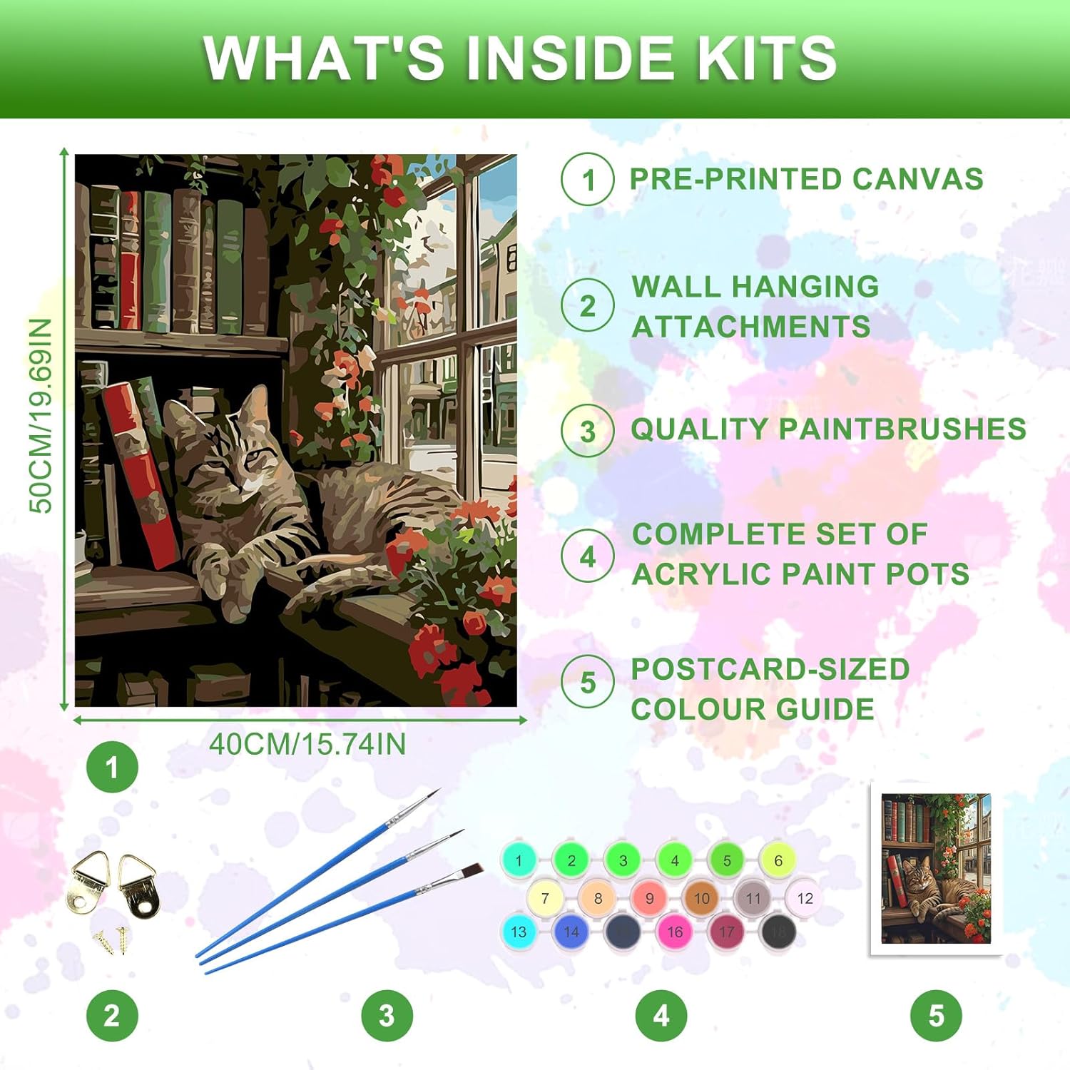 RICUVED Gatto Kit Dipingere con i Numeri per Adulti -Fiore Dipingere con i Numeri con 40x50 cm, Paint by Number Colori Acrilici Perfetto per Principianti