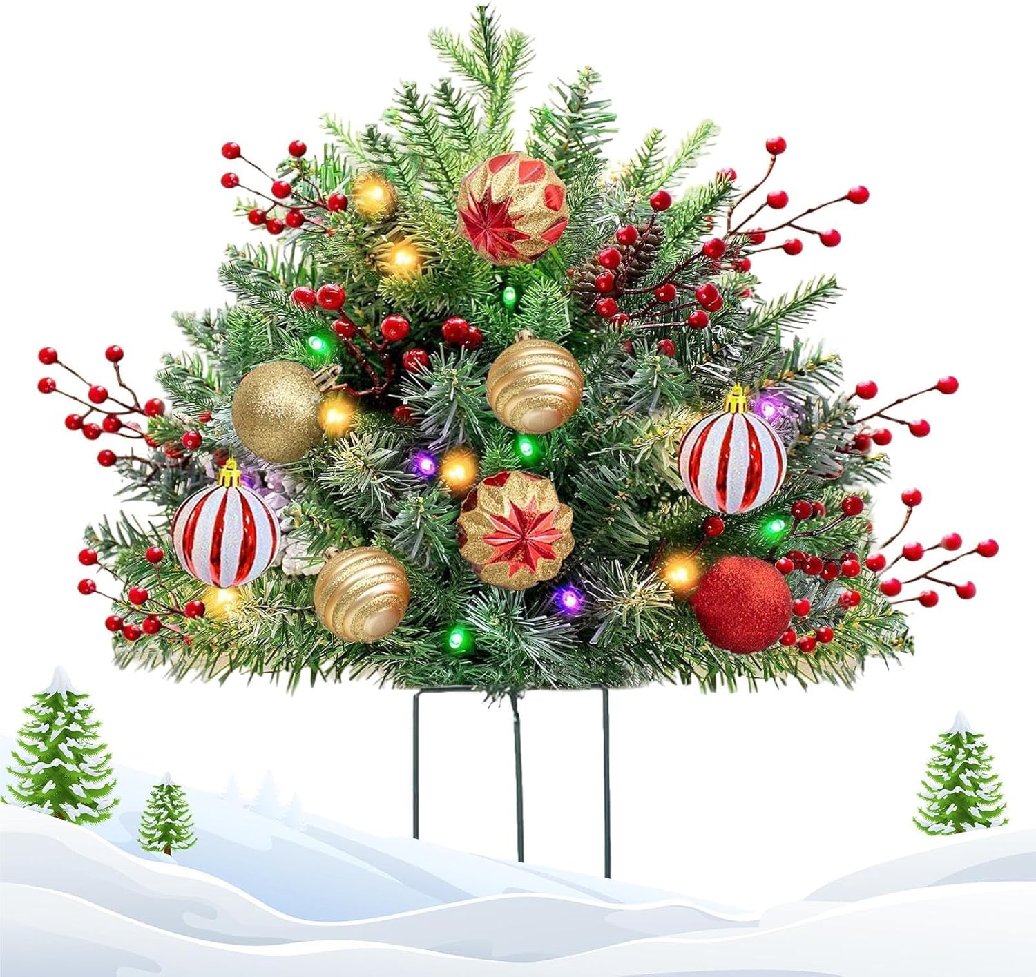Flessibilità alimentata a batteria: goditi diverse modalità con LED bianco caldo, alimentato a batteria per richiedere una presa di corrente, rinforzato con un pratico timer per una facile gestione delle decorazioni festive Anti-danno: la combinazione di materiale resistente alle intemperie e tecnologia a bassa tensione garantisce che mantenga i suoi colori vivaci e funzioni in modo affidabile all'interno e all'esterno durante il periodo natalizio Installazione semplice: questo prodotto di ancoraggio natalizio per esterni è preinstallato per un effetto silhouette immediato e un robusto supporto in metallo a forma di triangolo fissa la forma, consentendo una decorazione senza problemi. Calda decorazione natalizia: la combinazione di vegetazione realistica e portante rende un ingresso invitante diffonde un vero piacere di festa, particolarmente adatto per superfici esterne protette Semplice fascino festivo: crea un'atmosfera accogliente con uno stile natalizio versatile, si abbina perfettamente a ghirlande e ghirlande per migliorare istantaneamente il tuo ambiente esterno con il fascino festivo