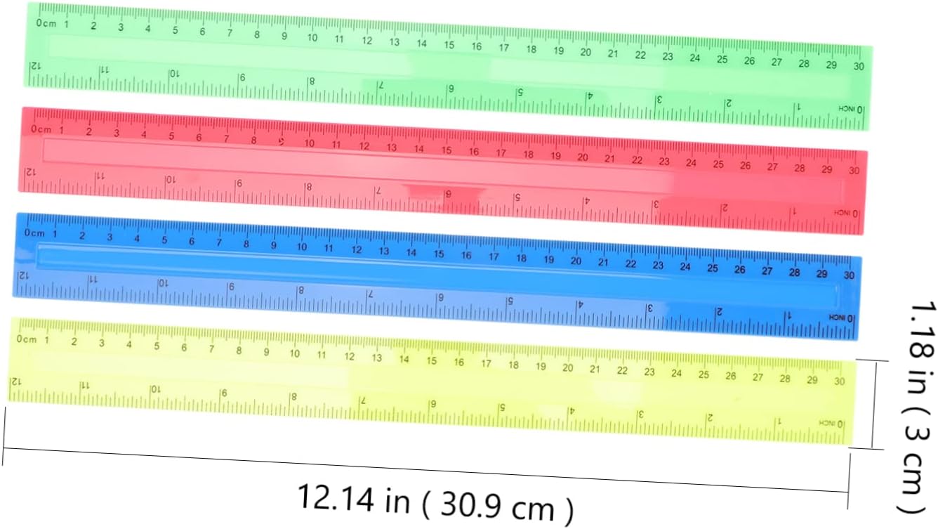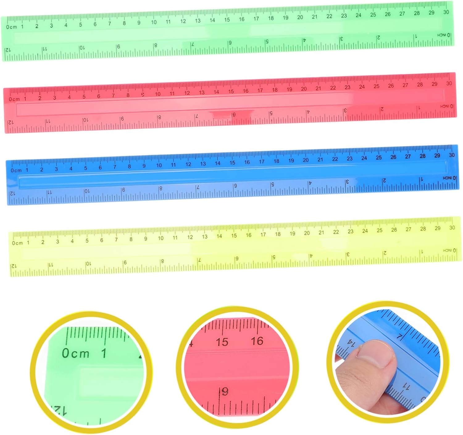 Righello per materiale scolastico: uno strumento di misurazione utile per lezioni di matematica, scuole, aule, uffici e spazi di lavoro, righello di misurazione Righello morbido per studenti di cancelleria: presenta misure in pollici e centimetri per rendere le tue misurazioni più facili e precise, righello dritto Righelli di plastica colorati: misurano comodamente oggetti da 12 pollici o 30 cm e disegnano facilmente le lunghezze esatte, righello per bambini Bastoncino di misurazione: realizzato in materiali plastici, può essere utilizzato a lungo termine, offre praticità, forniture sfuse per l'aula Ufficio scolastico: il nostro righello è un eccellente strumento di supporto per artisti, designer, architetti, ingegneri, studenti e così via, righello dritto in plastica