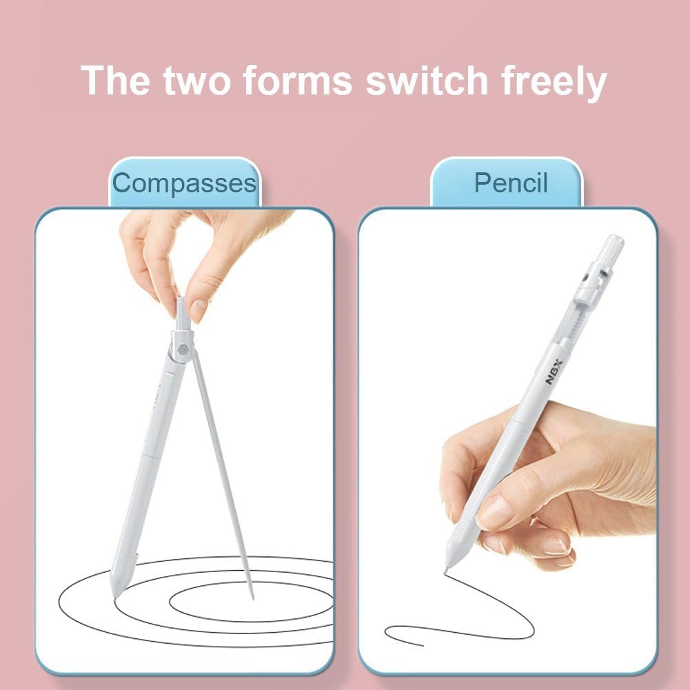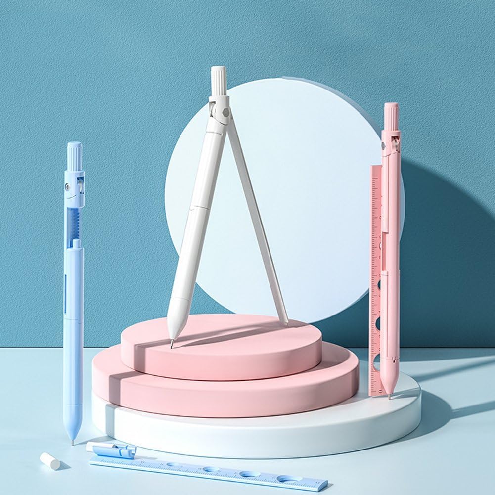 Kit multifunzionale: questa è una penna multifunzionale che combina matita, righello, gomma e bussola. Quattro utilizzi in una volta sola, di' addio alla noia. Le bussole sono dotate di un guscio in plastica a forma di penna, facile da trasportare e riporre, perfetto per la scuola, la casa, l'ufficio o il lavoro. Questa cancelleria multifunzione 4 in 1 realizzata in plastica in lega ABS, durevole, affidabile, stabile nei cerchi di disegno, leggera e portatile. Un pratico set di compassi con righello compatto, perfetto per studenti o insegnanti da utilizzare in lezioni di geometria, lezioni di disegno, disegno di matematica, ecc. O per la progettazione architettonica, ingegneria edile. Questo è l'ideale per coloro che non vogliono trasportare troppe cose. Questo set di cancelleria multifunzionale 4 in 1 è un must per gli studenti.