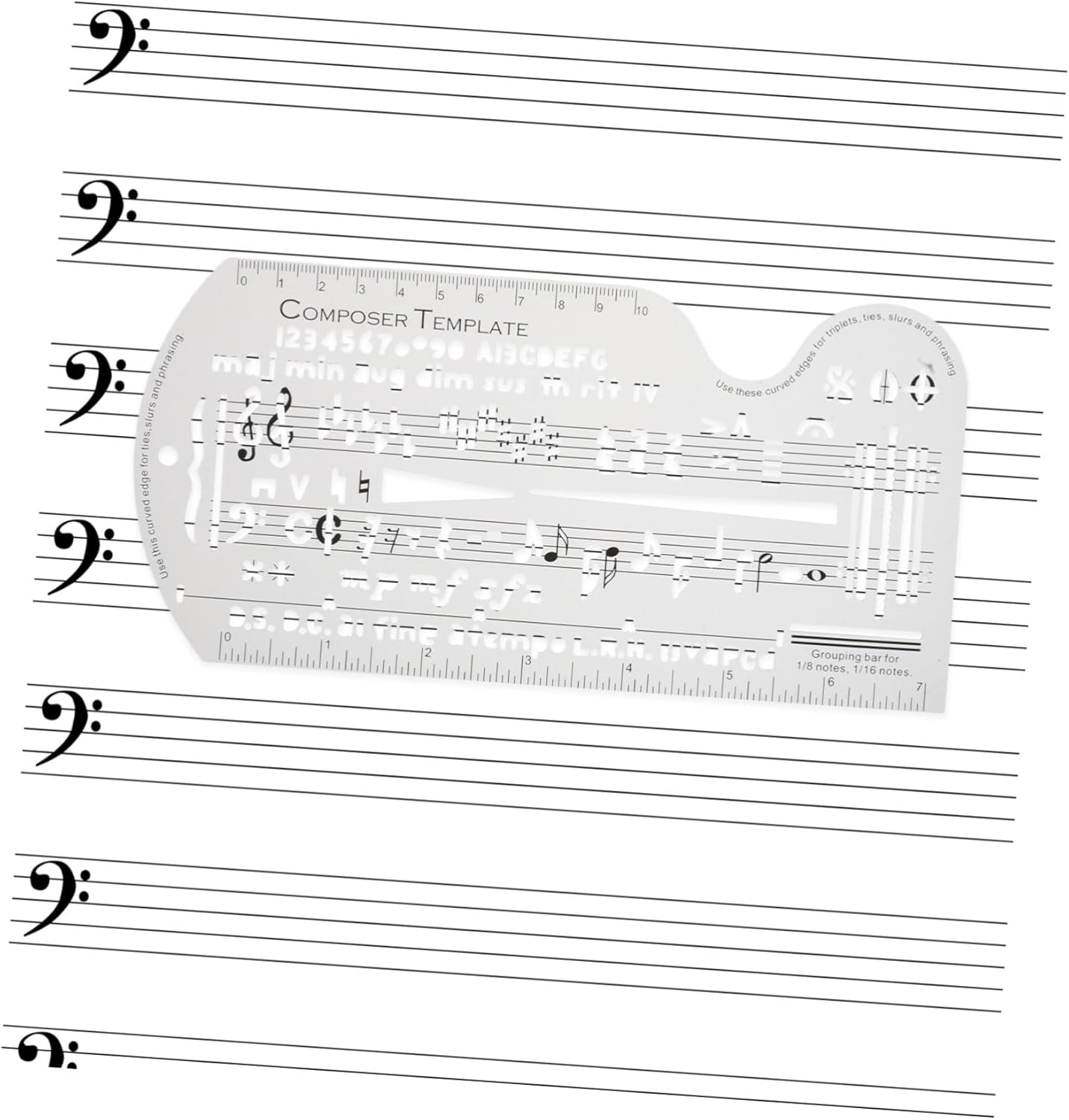 Comoda portabilità: design compatto adatto per l'uso nelle lezioni di , a casa o in viaggio, righello con simboli musicali, modello di scrittura Design portatile: ideale per aule di , casa o viaggi, che ti consente di utilizzare il righello per il del di notazione musicale, modello per il delle note sempre e ovunque Facile da padroneggiare: semplice da usare sia per i compositori esperti che per i principianti nell'educazione musicale, righello per disegnare note musicali, righello per disegnare simboli musicali Utilizzo versatile: dotato di scale per adattarsi a una varietà di simboli musicali, stencil per strumenti di scrittura di canzoni, stencil per composizione di linee di Adatto ai viaggi: leggero e portatile, ideale per l'uso in qualsiasi , compresi i viaggi, stencil per note musicali,