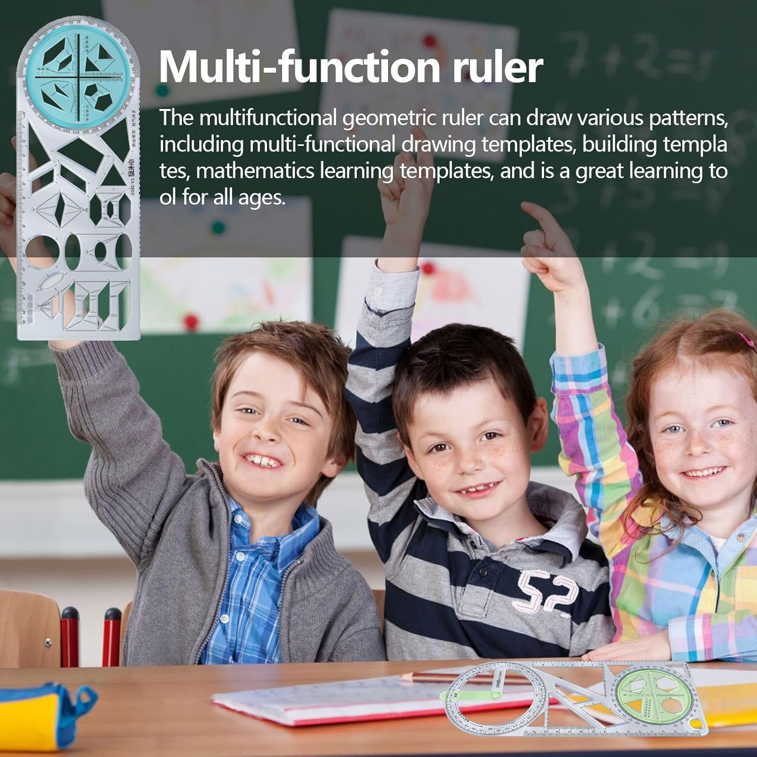 DESIGN INNOVATIVO Il nostro righello multifunzione realizzato con materiali ABS più avanzati per una costruzione affidabile, robusta e durevole. I materiali utilizzati sicuri e inodore con squisita lavorazione garantiscono la perfetta qualità di misurazione dei vostri disegni. Multifunzione: questo righello multifunzionale non è solo un ottimo strumento per disegnare diversi modelli, ma anche un modo divertente per imparare la matematica. La confezione include vari modelli di costruzione che consentono a tutte le età di creare bellissimi disegni e forme. Che tu voglia praticare geometria, fratture o simmetria, questo righello ti aiuterà a padroneggiare questi concetti in modo facile e divertente. Più creatività: il nostro righello multifunzionale offre diversi stili e forme tra cui scegliere per soddisfare le diverse esigenze. Questa utility funge anche da strumento di disegno ed è ideale per tracciare linee precise. Con questo righello, creare design versatili è facile. Basta selezionare la forma desiderata, posizionarla sulla carta e disegnare. Ottieni un risultato perfetto e accurato ogni volta. Disegno semplice: design unico per un comodo utilizzo. Il nostro righello multifunzione ha un design speciale che consente una facile maneggevolezza e una misurazione precisa. Il design a colori trasparente non ostacola la visione, mentre le scale chiare garantiscono la massima precisione. Ideale per l'uso quotidiano. Multiuso: questo righello multifunzione è un buon lavoro e apprendimento, consentendo misurazioni rapide e precise per diverse attività. La sua esclusiva funzione geometrica del righello lo rende uno strumento molto utile per schizzi, disegni, marcatura, progettazione, costruzione e layout. È ampiamente utilizzato da artisti, ingegneri, architetti, insegnanti e studenti.