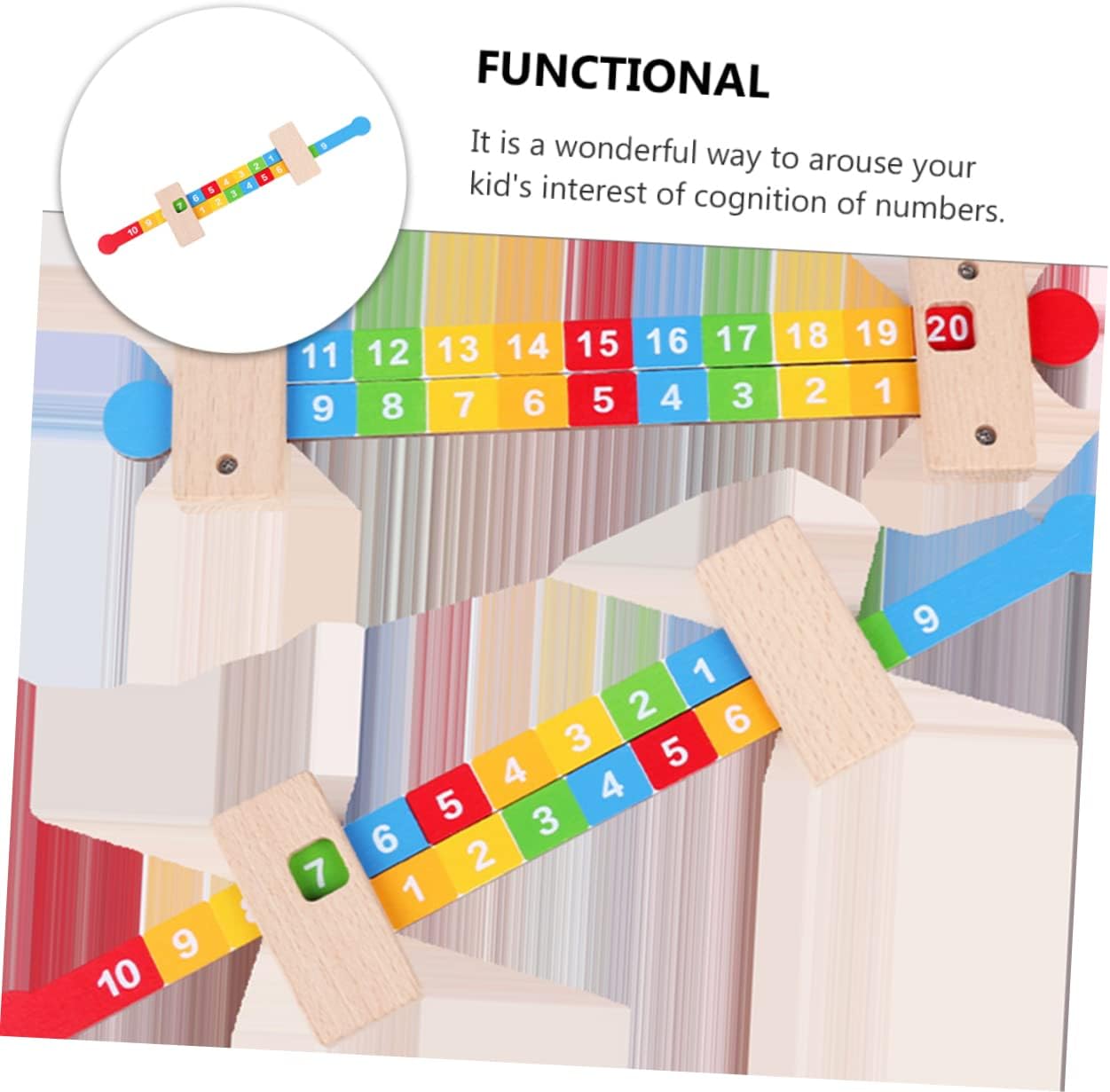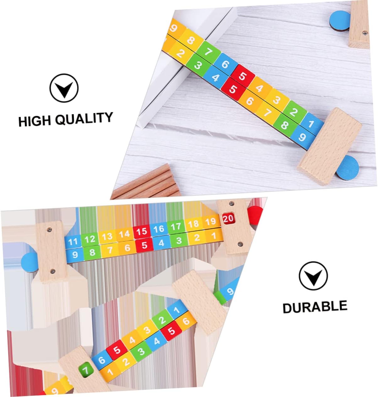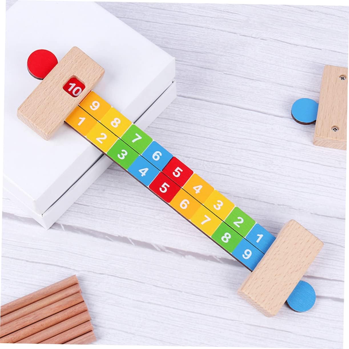 Il prodotto è realizzato in materiale per legno, alta qualità, resistente e sicuro da usare. Il bordo è liscio, i bambini possono giocare la sicurezza. Ottimo giocattolo educativo può aiutare i tuoi figli a conoscere il numero e la matematica. Il nostro righello di matematica significa che sono praticanti per i bambini per imparare da soli. Abbastanza numeri per lavorare più problemi contemporaneamente, strumento pratico e conveniente per gli adolescenti imparare a contare.