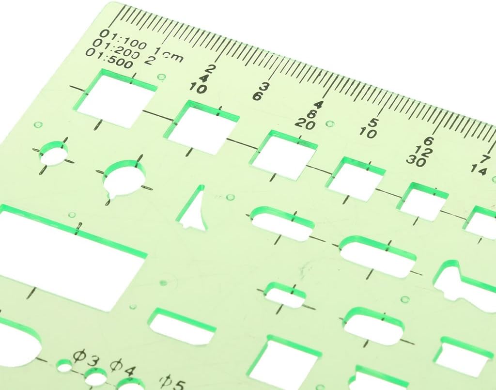 Colore: verde Diversi modelli che puoi scegliere, che possono aiutare i tuoi bambini a disegnare diverse forme. Aiuto per studenti e bambini che imparano a usare, anche un regalo pratico e promozionale per il tuo bambino. modelli: modello di disegno multifunzionale, modelli di costruzione, modello ovale e modello elettricista ( si prende ) righello da disegno semplice, pratico e preciso.