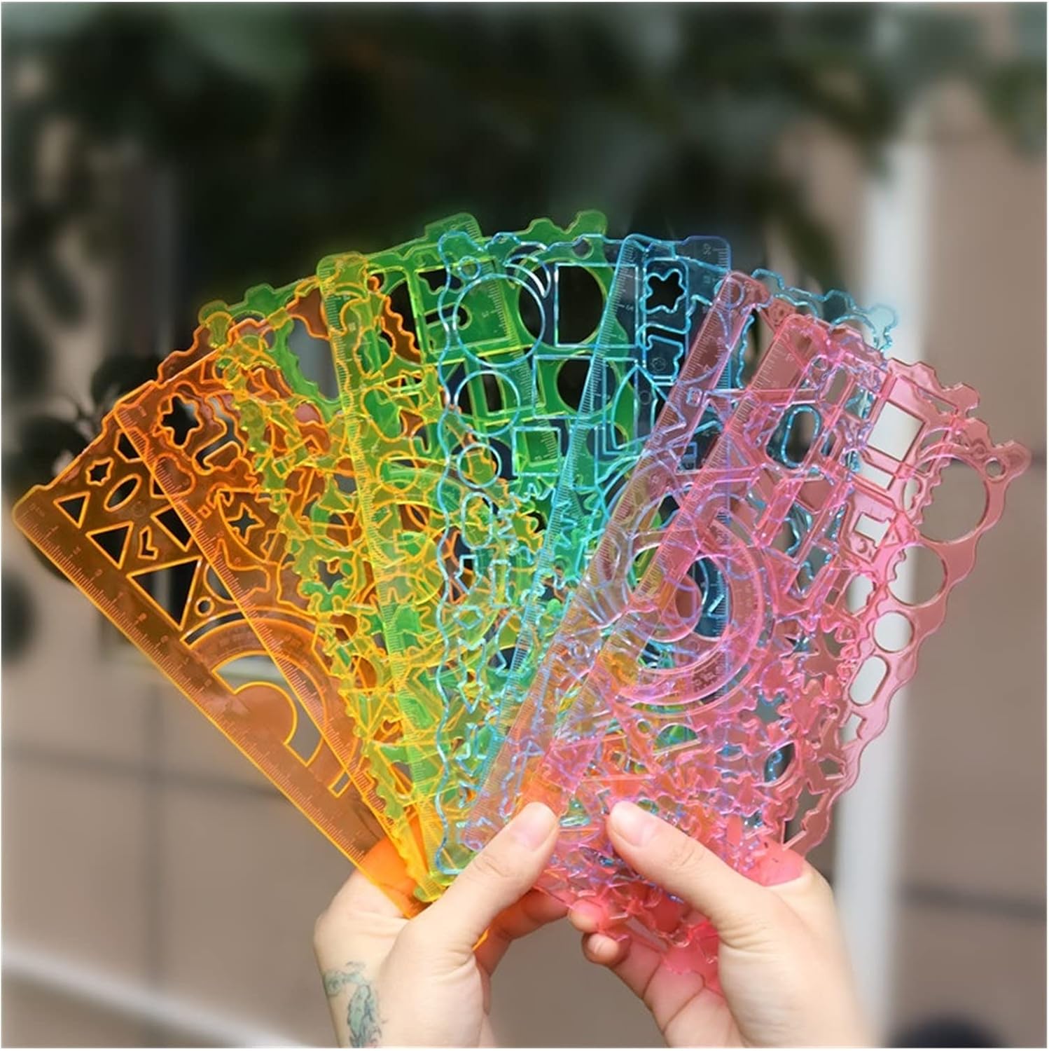 Questo righello impostato multi-funzionale del disegno del righello, il goniometro, le varie forme geometriche e molti tipi di modelli, è un buon aiutante per il disegno dei bambini. Plastica di alta qualità, facile da indossare, chiara. Il design user-friendly è facile da usare e non danneggia le mani.Risparmia tempo e migliora l'efficienza del lavoro. Il design umanizzato, facile da usare, non fa male alle mani. Risparmia tempo e aumenta la produttività. metodo ampiamente utilizzato. Scala chiara, durevole, di alta precisione e flessibile.