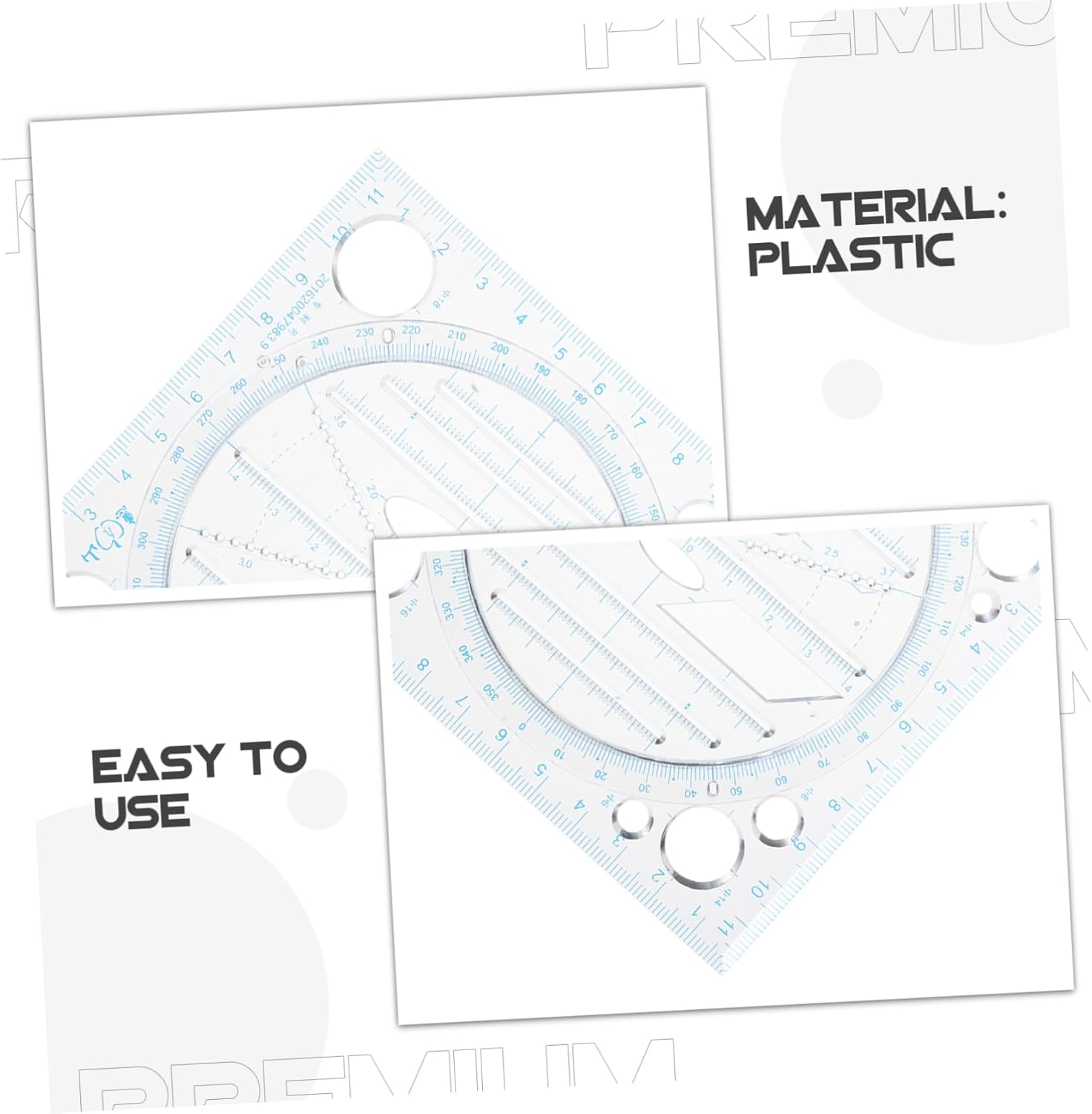 Usabilità senza sforzo: progettato con funzionalità intuitive, consente un funzionamento fluido, migliorando la produttività e riducendo i tempi di disegno, modelli di disegni geometrici, righello di misurazione scolastico Accesso: include marcature chiare e dettagliate per letture rapide e precise, semplificando il processo di disegno e migliorando l'efficienza, in plastica, strumento righello multiangolo Marcature efficienti: indicatori di scala chiari e precisi consentono l'interpretazione dei dati, riducendo al minimo gli errori nei progetti complessi, righello per disegno circolare, strumento di disegno Costruzione: realizzato in plastica resistente, questo strumento mantiene la sua forma e funzionalità anche con un uso frequente, righello multiuso per disegno di linee parallele, per disegno di angoli Misurazione di precisione: progettato per studenti e ingegneri, questo righello garantisce misurazioni accurate, migliorando la precisione nei progetti professionali che in quelli accademici, strumento di disegno per ufficio, righello multiuso
