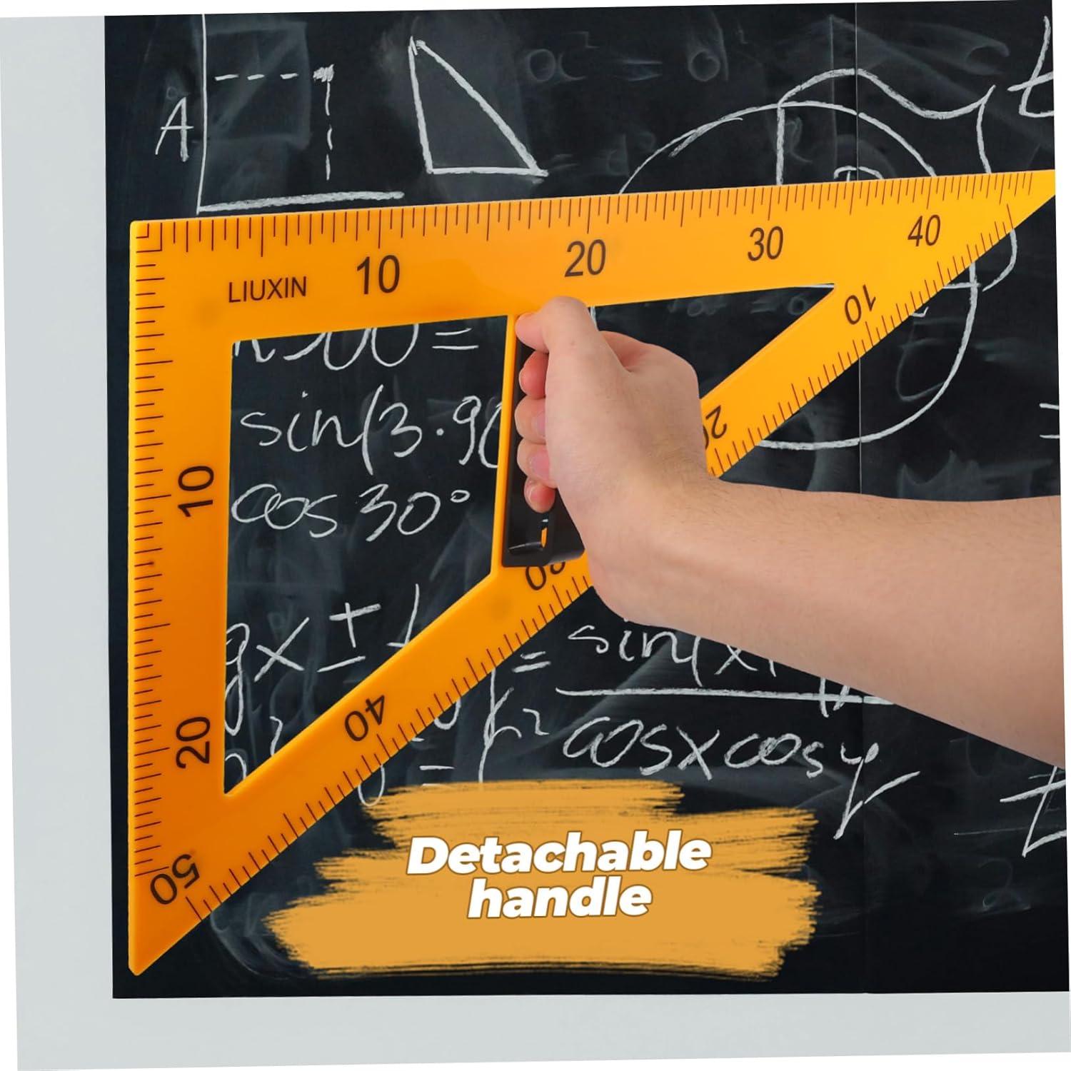 Righello per l'insegnamento della geometria: maniglia staccabile per un comodo stoccaggio e trasporto: questo righello triangolare è dotato di una maniglia staccabile, che consente un facile stoccaggio e trasporto. Righelli per il disegno della geometria: il suo design consente una facile visualizzazione e comprensione dei concetti geometrici. Strumenti didattici: 📏 📐✂️la maniglia staccabile di questa tavola triangolare la rende facile da riporre e trasportare, rendendola strumento conveniente per gli insegnanti. Righelli triangolari da disegno: la lavagna magnetica e la maniglia staccabile lo rendono comodo per le dimostrazioni in classe. Righello triangolo didattico magnetico: 📏 📐✂️il design magnetico di questa lavagna triangolare la rende strumento eccellente per dimostrazioni in classe, consentendo agli insegnanti di facilmente vari concetti ai loro studenti.