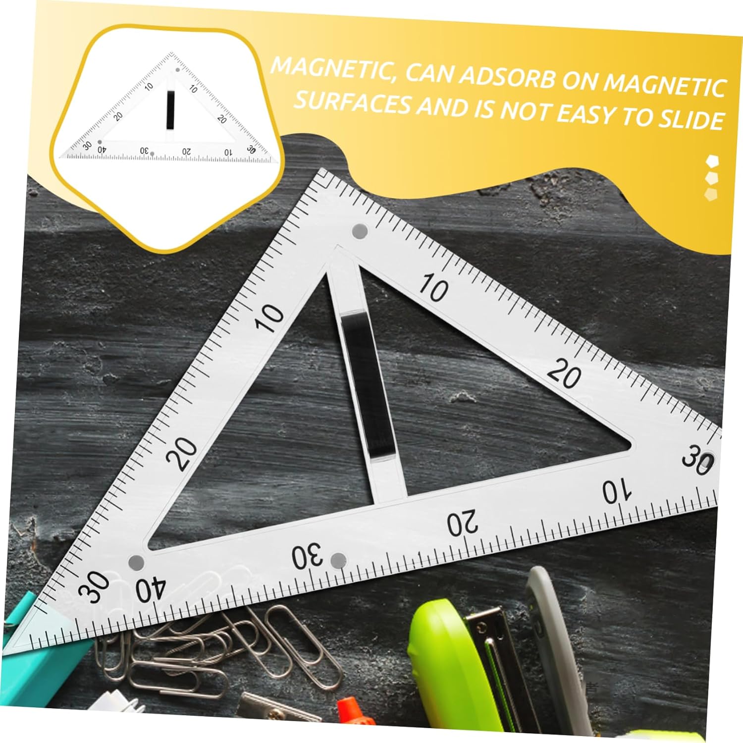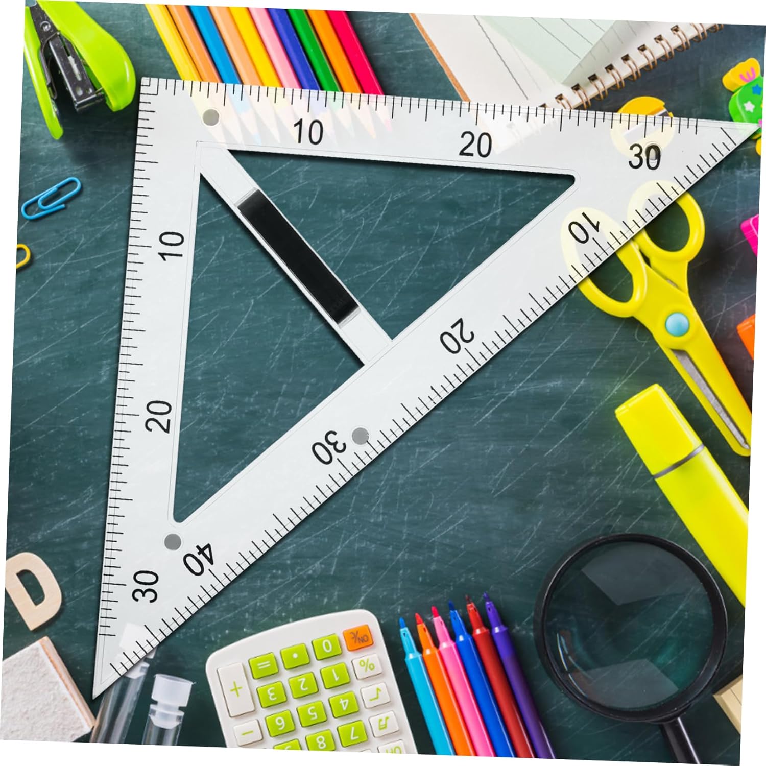 Materiali didattici: il design magnetico del righello didattico impedisce che scivoli su superfici magnetiche e strumenti didattici Strumenti di disegno: il goniometro didattico è progettato specificamente per scopi didattici, righelli per il disegno della geometria Strumenti didattici per insegnanti: realizzati in abs e materiali magnetici, che garantiscono durata e facile pulizia, righello didattico Goniometro didattico: il righello del triangolo didattico è realizzato in materiale trasparente che consente una facile osservazione del processo di disegno, righello del triangolo didattico Accessori per l'insegnamento della matematica: l'uso di materiali abs e magnetici garantisce la durata dello strumento di disegno e una facile pulizia, righello per l'insegnamento della geometria