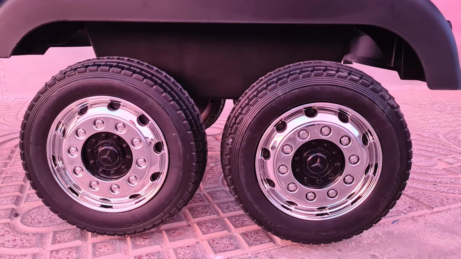 -Contiene 4 ruote in plastica con battistrada in gomma -Con sistema di sicurezza per il camion dei bambini e rimorchio